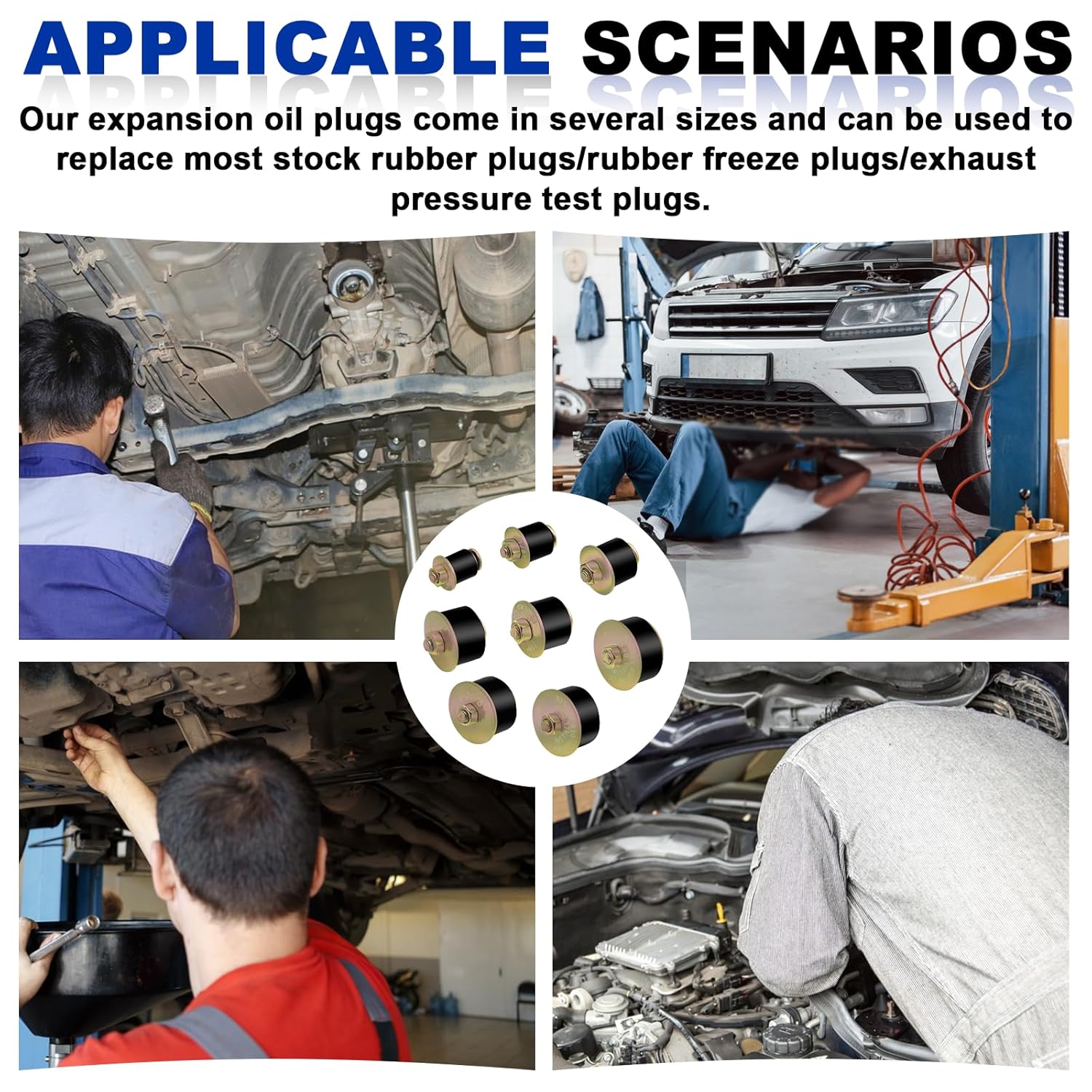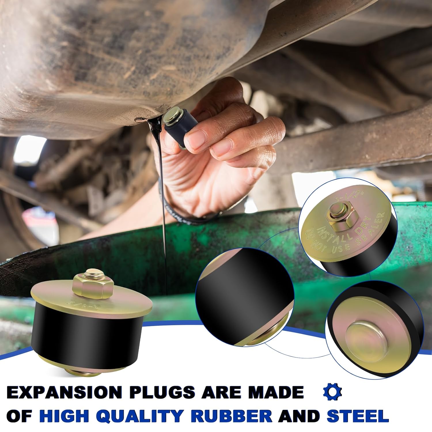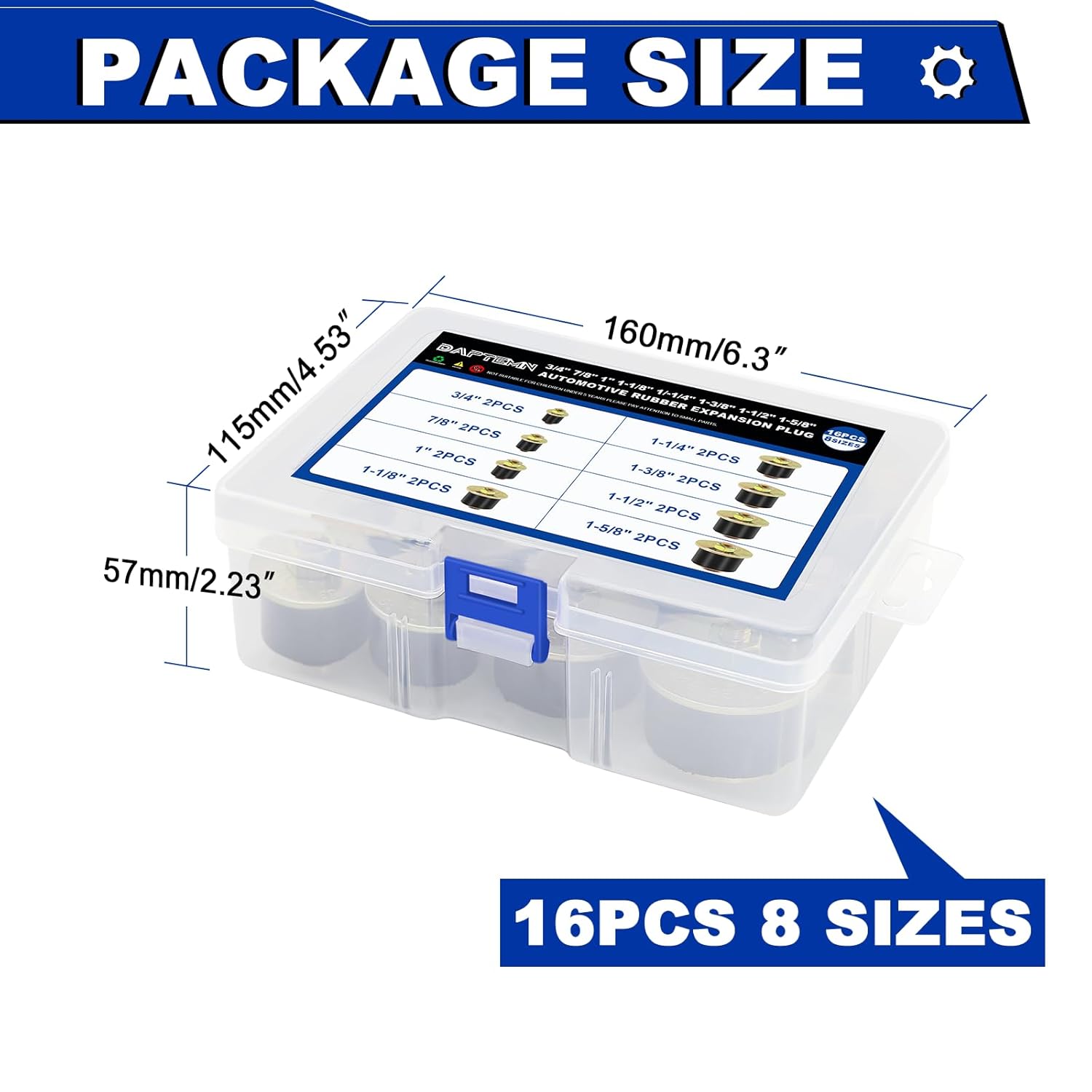 O armazenamento é facilitado por uma caixa plástica que protege os plugs de congelamento contra danos e permite uma organização prática. Fabricados com borracha de neoprene de alta qualidade e material de liga, os plugs oferecem excelente elasticidade e uma superfície lisa, evitando vazamentos de óleo nos motores automotivos.