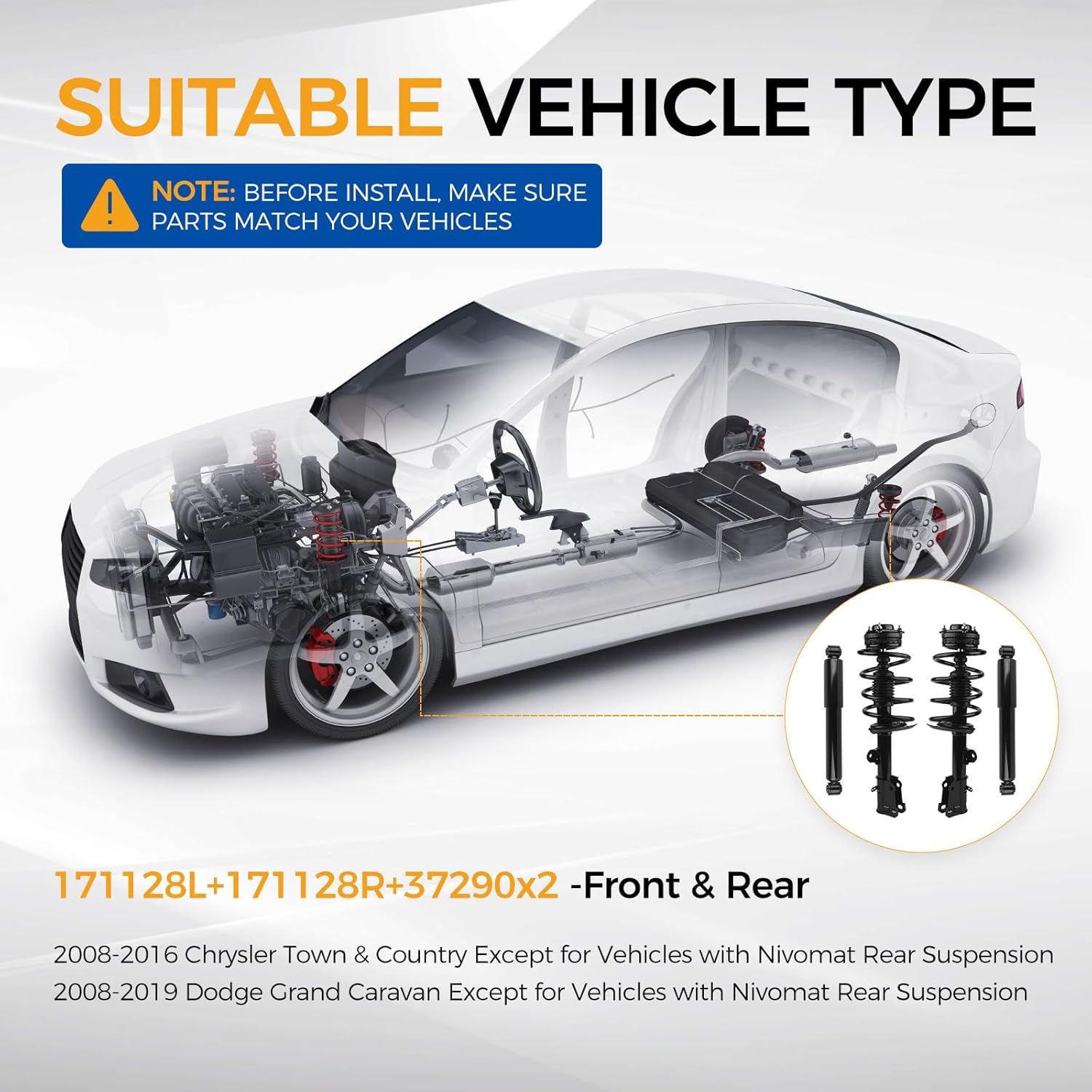 - 【Compatibilidade】Compatível com Chrysler Town & Country de 2008 a 2016, exceto veículos com suspensão traseira Nivomat, e Dodge Grand Caravan de 2008 a 2019, exceto veículos com suspensão traseira Nivomat, tanto na frente quanto atrás.
