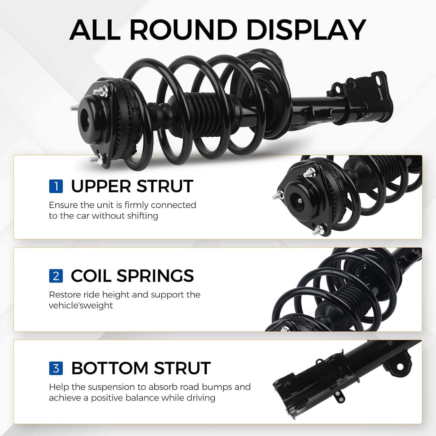 - 【Nota】Antes de realizar o pedido, consulte o menu de veículos no topo da lista, selecione o “Ano, Marca, Modelo” do seu veículo e clique em “Verificar Compatibilidade” para garantir que os amortecedores se encaixam no seu carro, ou verifique a descrição da página do produto para confirmar a correspondência exata.
