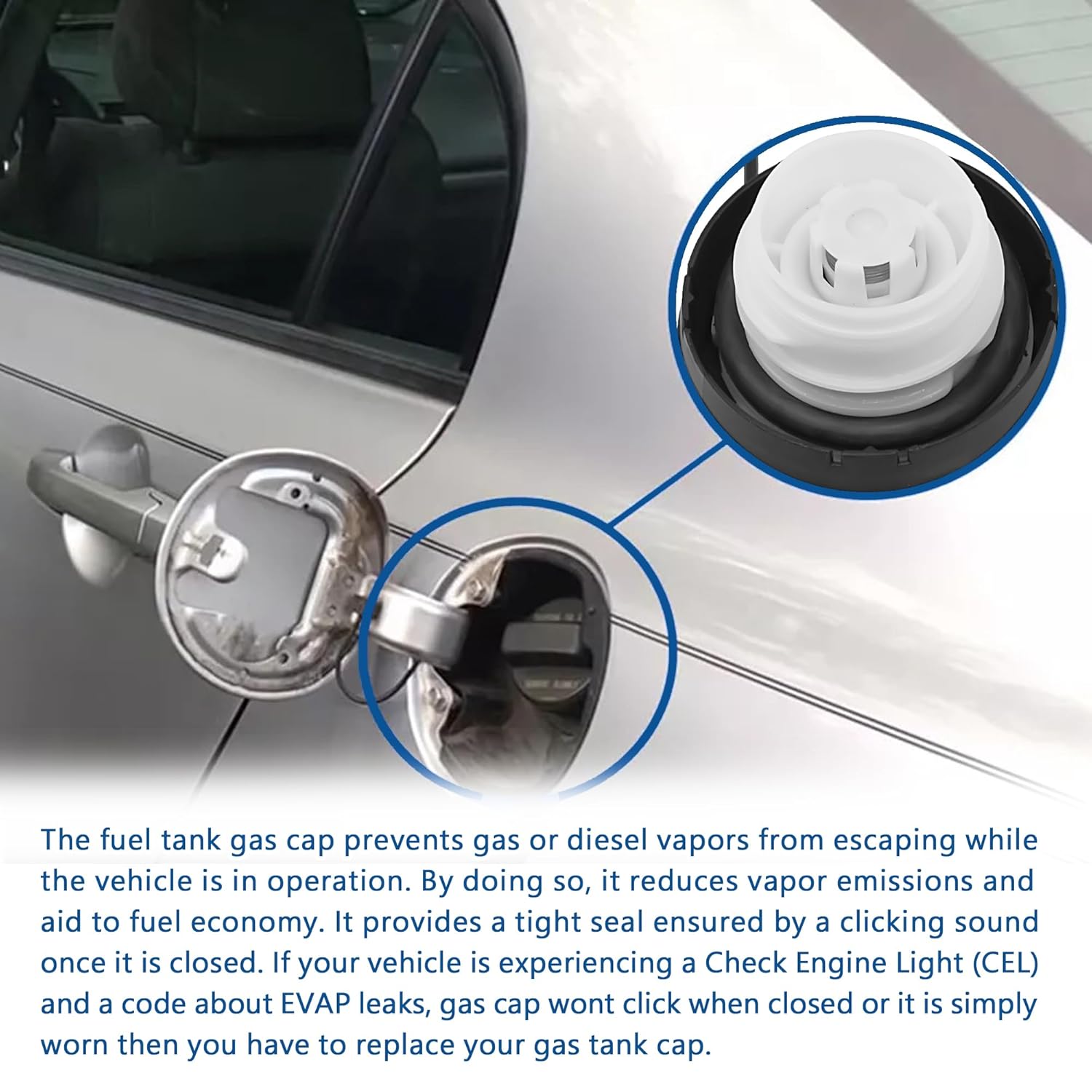 - â–¶FUNÇÃOâ—€ – A tampa de combustível proporciona um fechamento hermético, mantendo o tanque de combustível do seu veículo seguro. Isso não apenas protege os ocupantes do veículo, mas também melhora a economia de combustível e reduz as emissões de vapor. Uma tampa de combustível antiga, solta ou danificada pode acionar a luz de verificação do motor (CEL). Se a luz de verificação do motor acender ou se você sentir cheiro de gasolina ou vapores de diesel perto da tampa de combustível, verifique a tampa imediatamente.