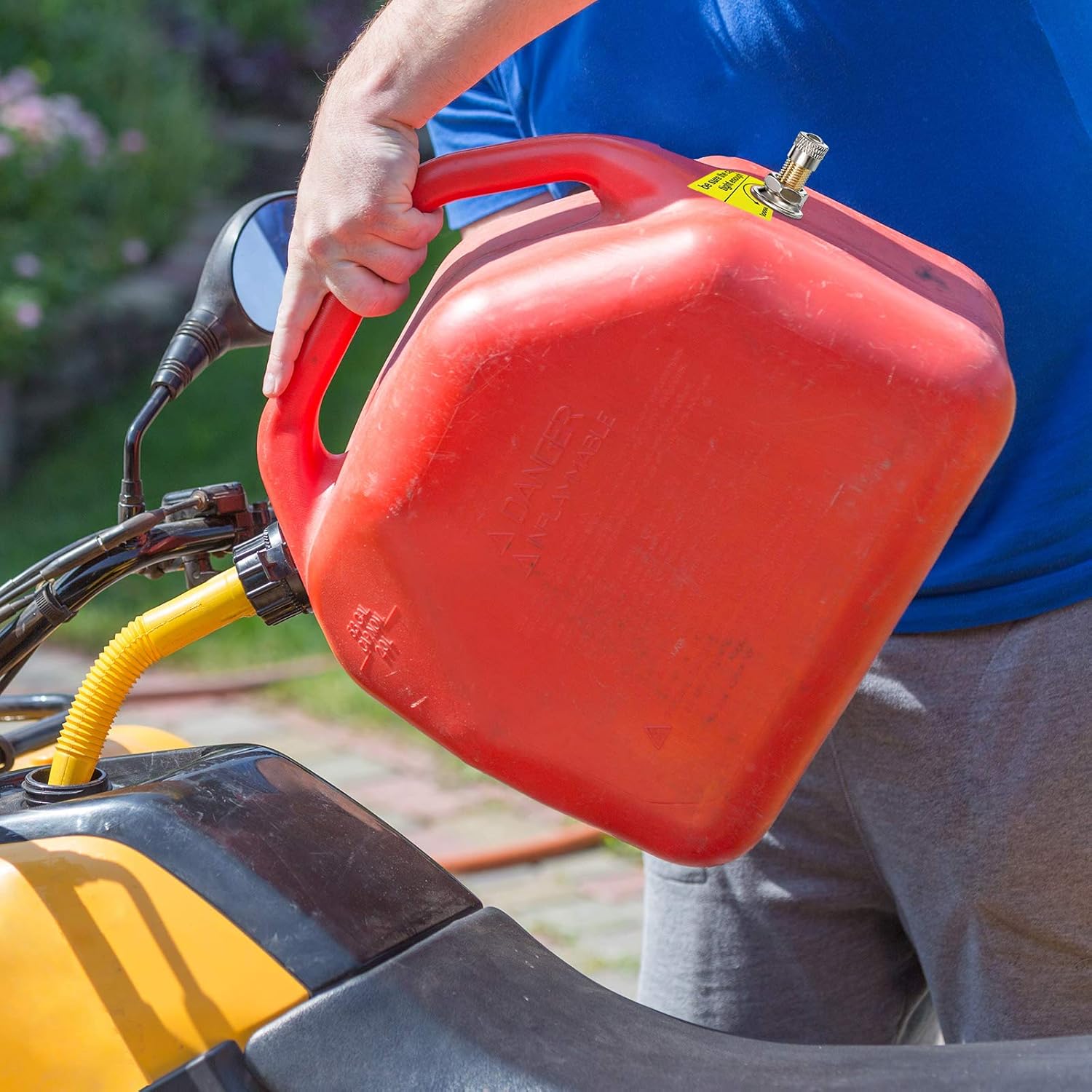 These gas can vents do the job. I got so tired of watching the gas drip drip drip from the container into my riding lawnmower’s tank. After adding these vents, BOOM! drip drip drip became whoosh! One of the best things I’ve purchased in the last couple of years.