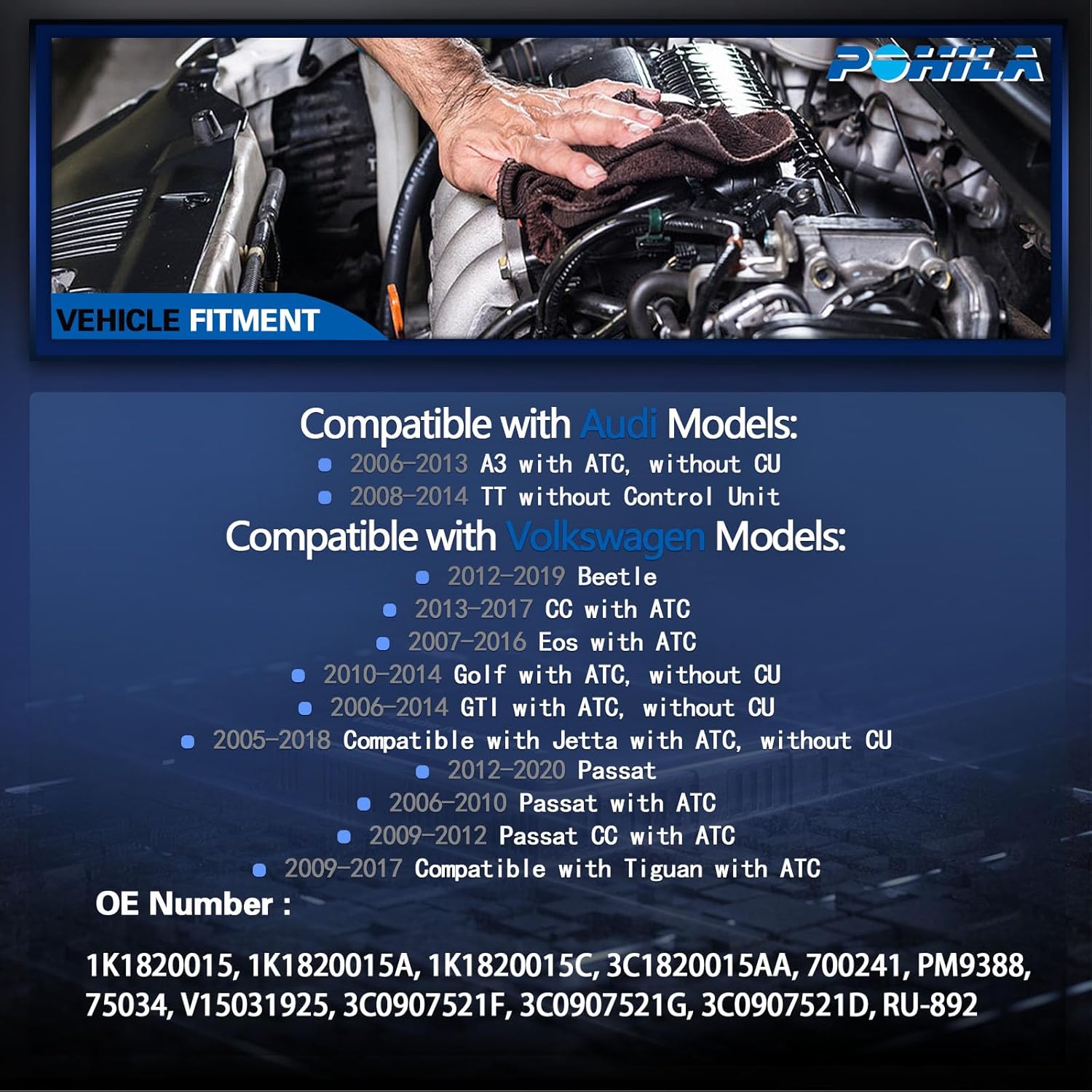 – Compatibilidade: Audi A3 (2006-2013), Audi TT (2008-2014), VW Beetle (2012-2019), CC (2013-2017), Golf (2010-2014), GTI (2006-2014), Jetta (2005-2018), Passat (2012-2020), Tiguan (2009-2017).