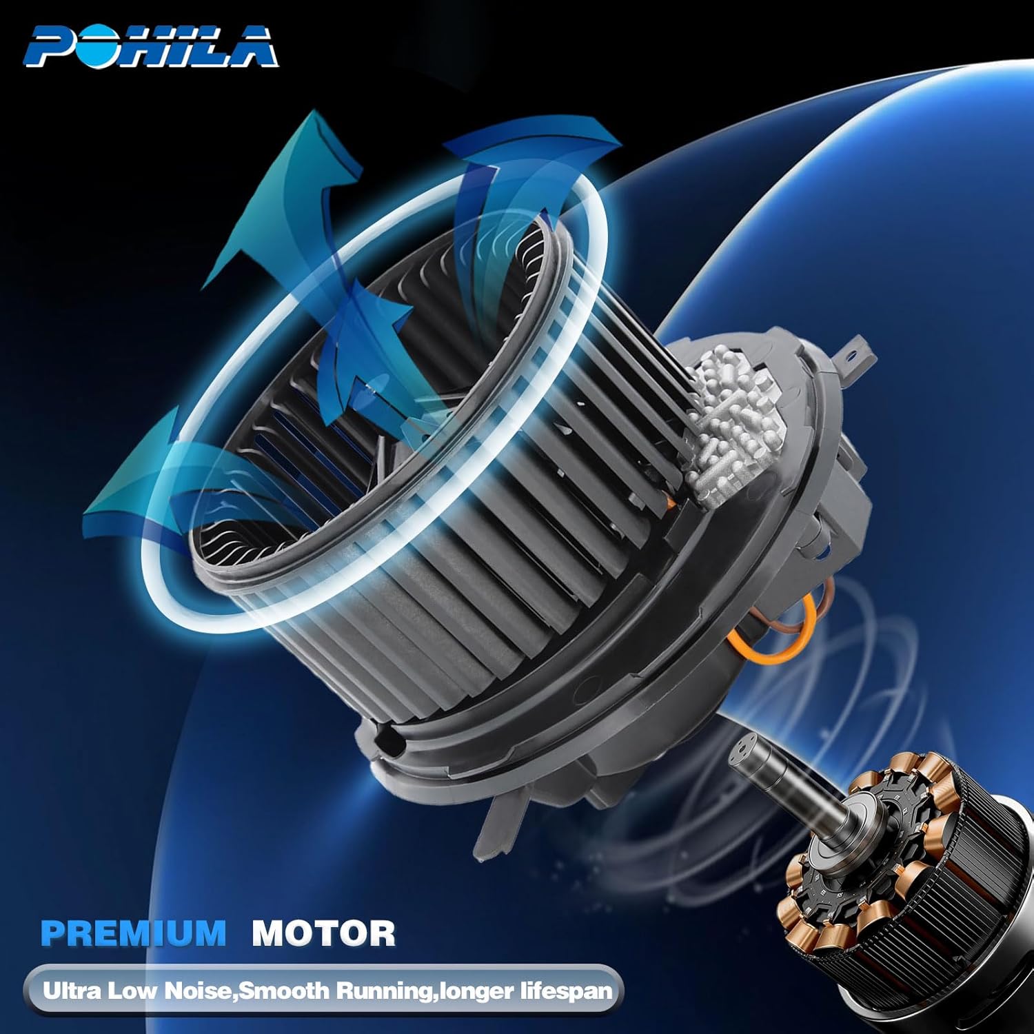 O motor apresenta características estáveis e alta confiabilidade, proporcionando um volume de ar maior e um funcionamento mais silencioso. Fabricado com aço silício específico para motores e fio de cobre esmaltado de alta qualidade, ele atende às especificações OE, garantindo uma instalação direta sem necessidade de modificações. A tecnologia de ponta utilizada na sua produção torna este motor mais ecológico e econômico em termos de consumo de energia.