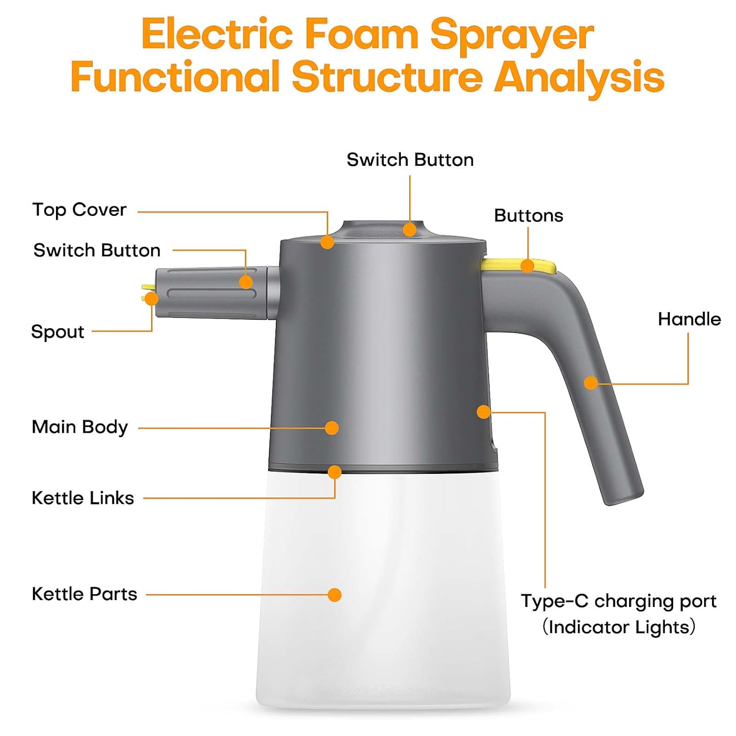 Apresentamos o Spray de Espuma Elétrico de 1L com Bloqueio de Segurança, a solução ideal para quem busca eficiência e praticidade na limpeza de veículos, jardins e ambientes domésticos. Com um design inovador, este pulverizador elétrico é equipado com uma bomba de água e uma bomba de ar integradas, permitindo que a espuma seja gerada através da sucção da bomba de água. Isso não só garante uma operação mais segura em comparação com os pulverizadores elétricos comuns, mas também minimiza o risco de vazamentos. O resultado é uma espuma rica e uniforme, que proporciona uma limpeza eficaz e silenciosa, tornando-se a melhor escolha para o uso em casa.
