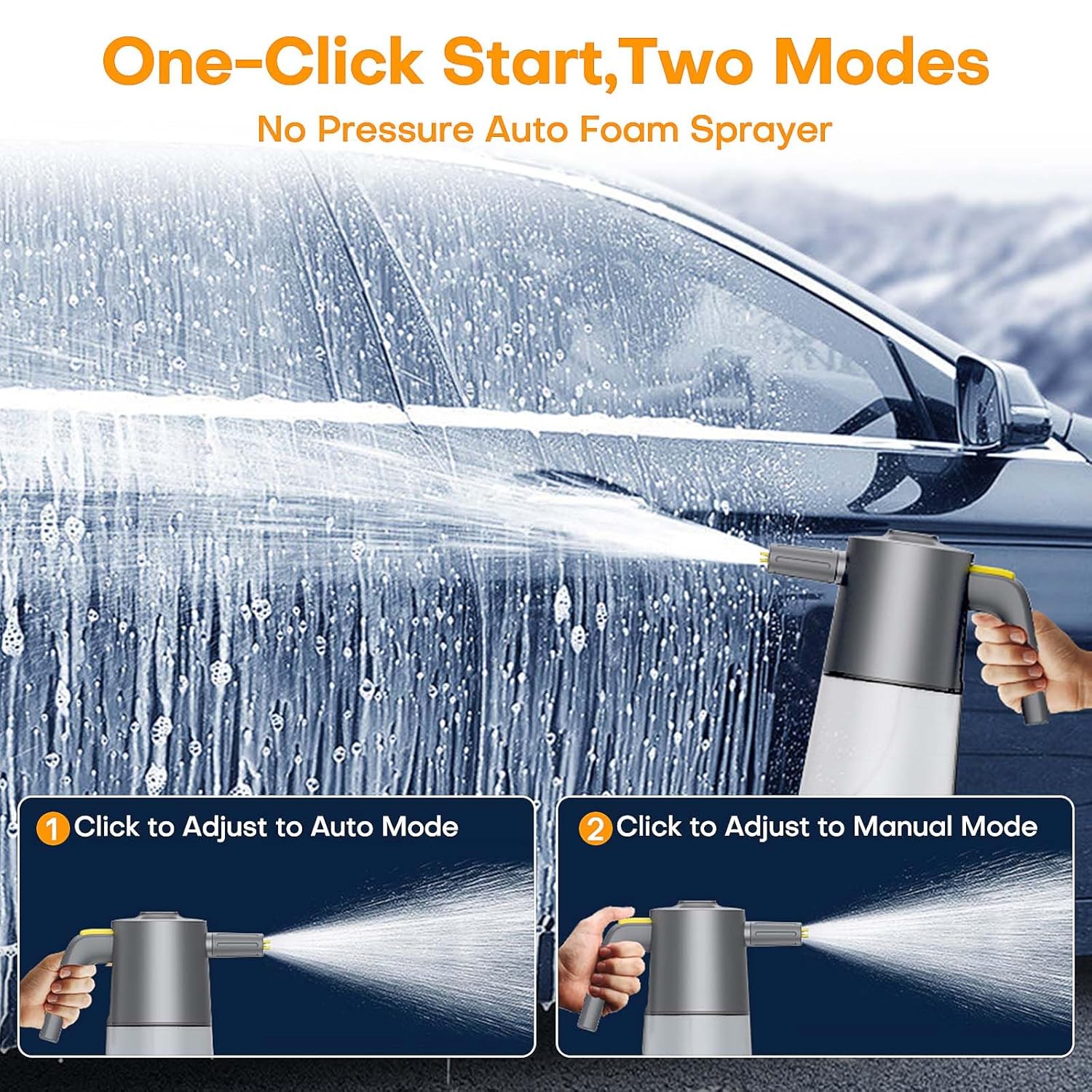 I have used a handful of manual and other types of sprayers in hopes of finding a fast and simple alternative to hauling out a full-fledged pressure washer and foam cannon every time I want to wash my car. Foam cannons work great and I enjoy using them. However, I have not had much luck with manual sprayers, or the kind that connect directly to the hose. This electric sprayer absolutely surprised me. My hopes were not incredibly high but I thought I might as well give it a shot. This is the ONE hand held sprayer that creates thick, shaving-cream-like foam on the same level as an actual foam cannon. Obviously the volume is not the same, but that should be expected from such a compact option. I tried it with multiple different kinds of foaming car soap and they all produced exceptionally good results. The battery lasts a long time. The sprayer is easy to operate. I would absolutely recommend this option for someone who wants something a little more user friendly than a classic pressure washer and foam cannon. If you’re limited on space to wash your car, but still want to take good care of your baby, this is the one for you. If you don’t have unrealistic expectations, this is a purchase you won’t regret.