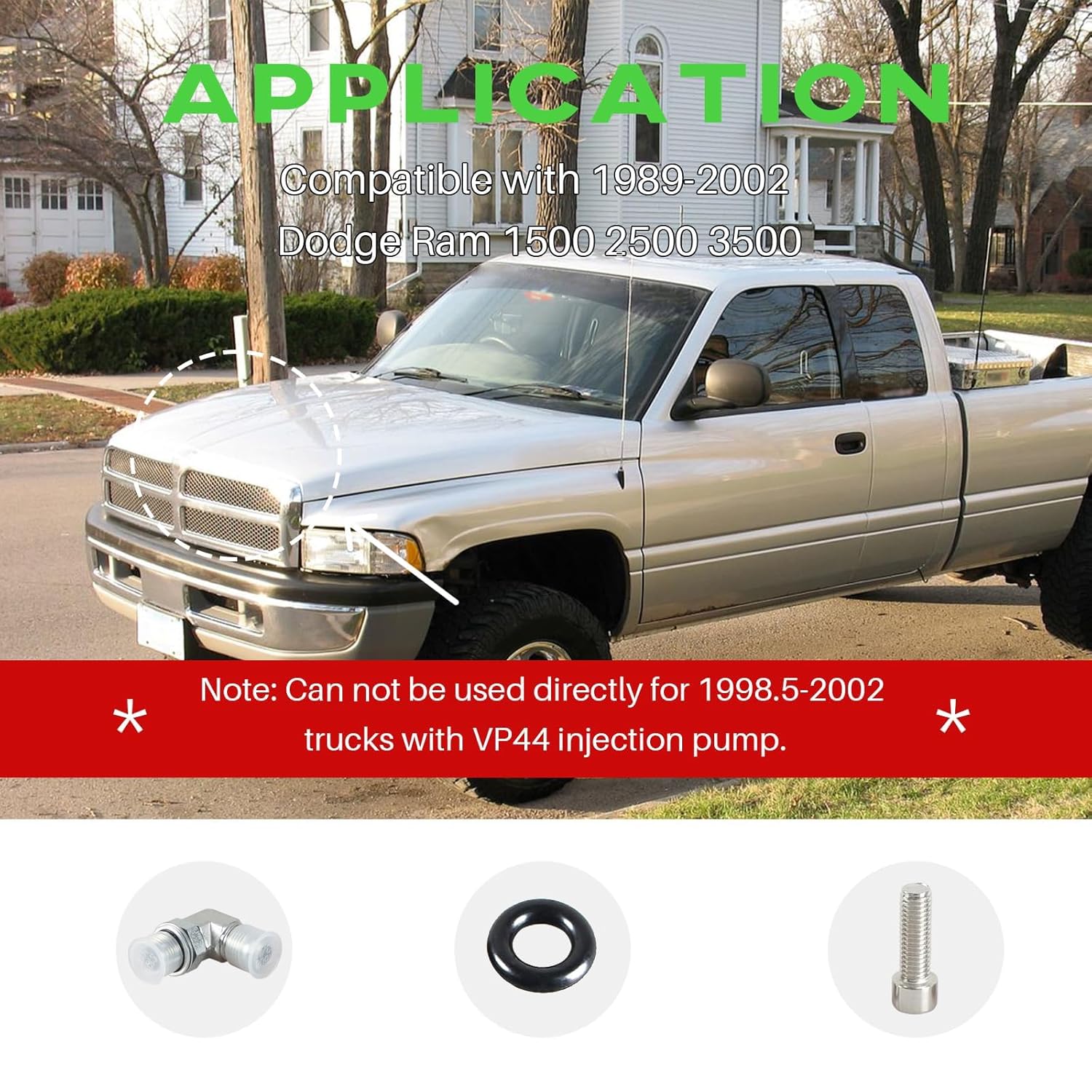 Compatível com as picapes Dodge Ram 2500, 3500, D250, D350, W250 e W350, este produto não é indicado para caminhões fabricados entre 1998.5 e 2002 que utilizam a bomba de injeção VP44. Para uma instalação adequada, os cabeçotes dos parafusos no suporte traseiro da bomba devem ser cortados para garantir o espaço necessário.