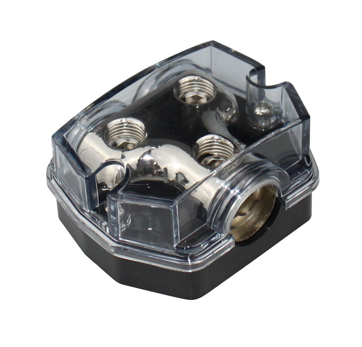 O Power Distribution Block PD-05B-0GA é a solução ideal para quem busca eficiência e qualidade em sistemas de áudio automotivo. Este bloco de distribuição de energia é projetado para aceitar uma entrada de 1/0 AWG e fornecer duas saídas de 0 AWG, garantindo que sua instalação elétrica seja robusta e confiável. Com uma base revestida de níquel e uma tampa cinza, o design não só é funcional, mas também esteticamente agradável, complementando o interior do seu veículo.