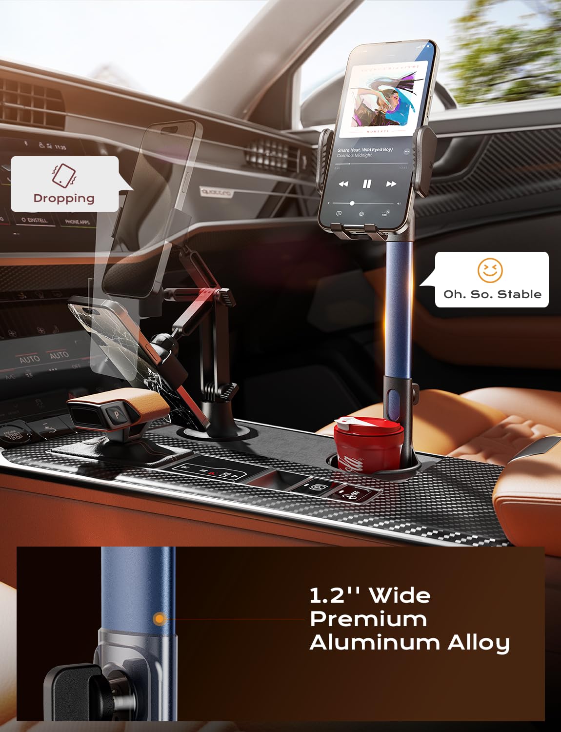 The holder itself is decent, but the part that fits into the cup holder is bulkier than expected, which makes it hard to find a bottle that fits properly. This was disappointing because that was one of the main reasons I bought it. I decided to keep it because the phone holder is sturdy and doesn’t shake, unlike some others I’ve tried, which makes it more reliable while driving.