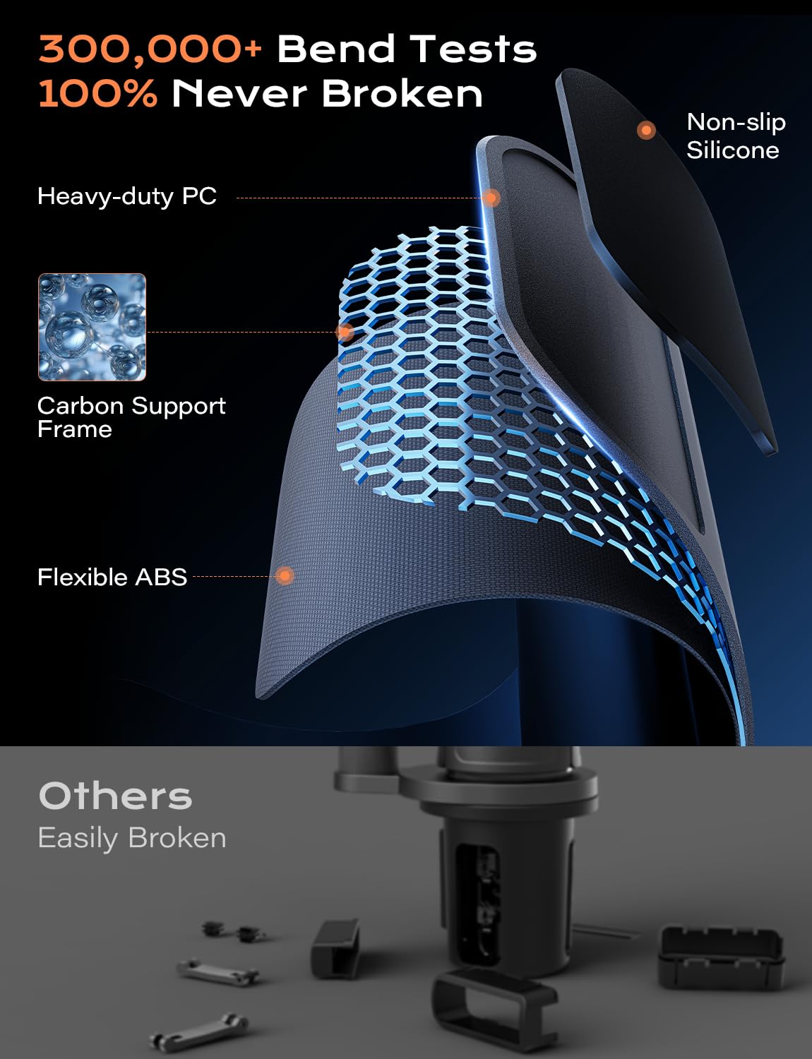 A durabilidade é uma das principais características do suporte TAZENI. Com três camadas de materiais de alta qualidade, ele foi testado para resistir a mais de 300.000 flexões, superando os suportes tradicionais que costumam quebrar após uso repetido. Este suporte foi projetado para durar mais de dez anos, garantindo um excelente custo-benefício.