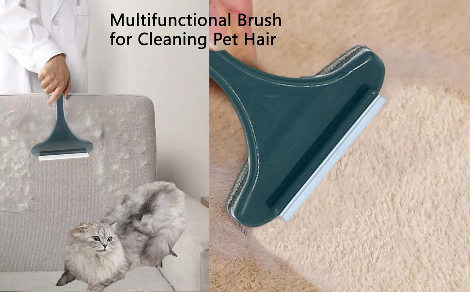 A escova 2 em 1 apresenta um lado com superfície de flanela e o outro com raspador, oferecendo versatilidade para suas necessidades de limpeza. A superfície de flanela pode ser utilizada úmida para evitar a poeira, ideal para remover o pó diário e o pólen. Quando seca, é perfeita para coletar pelos de animais em carpetes, camas e sofás. O lado raspador é eficaz para limpar vidros de janelas ou resíduos em bancadas, seja úmido ou seco.
