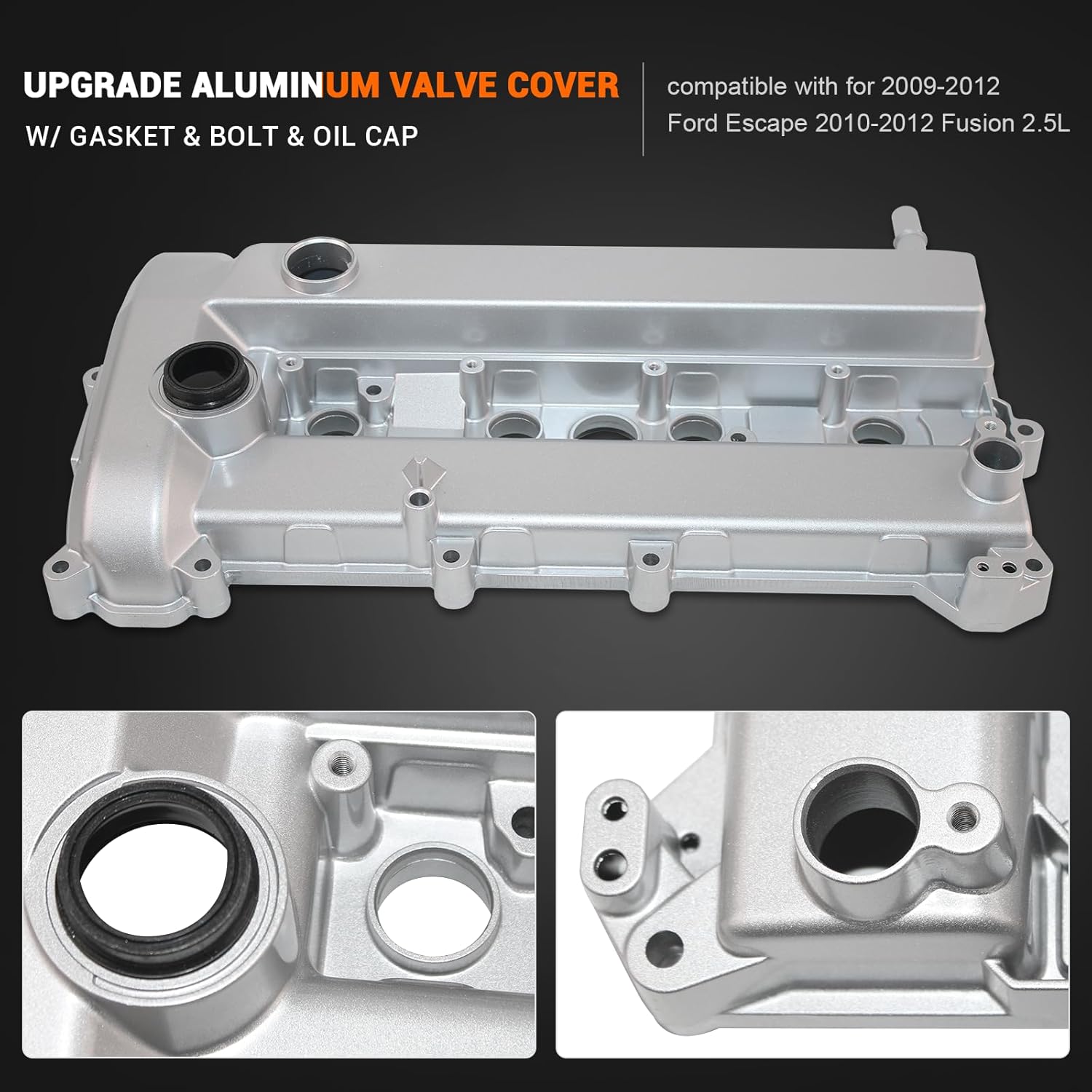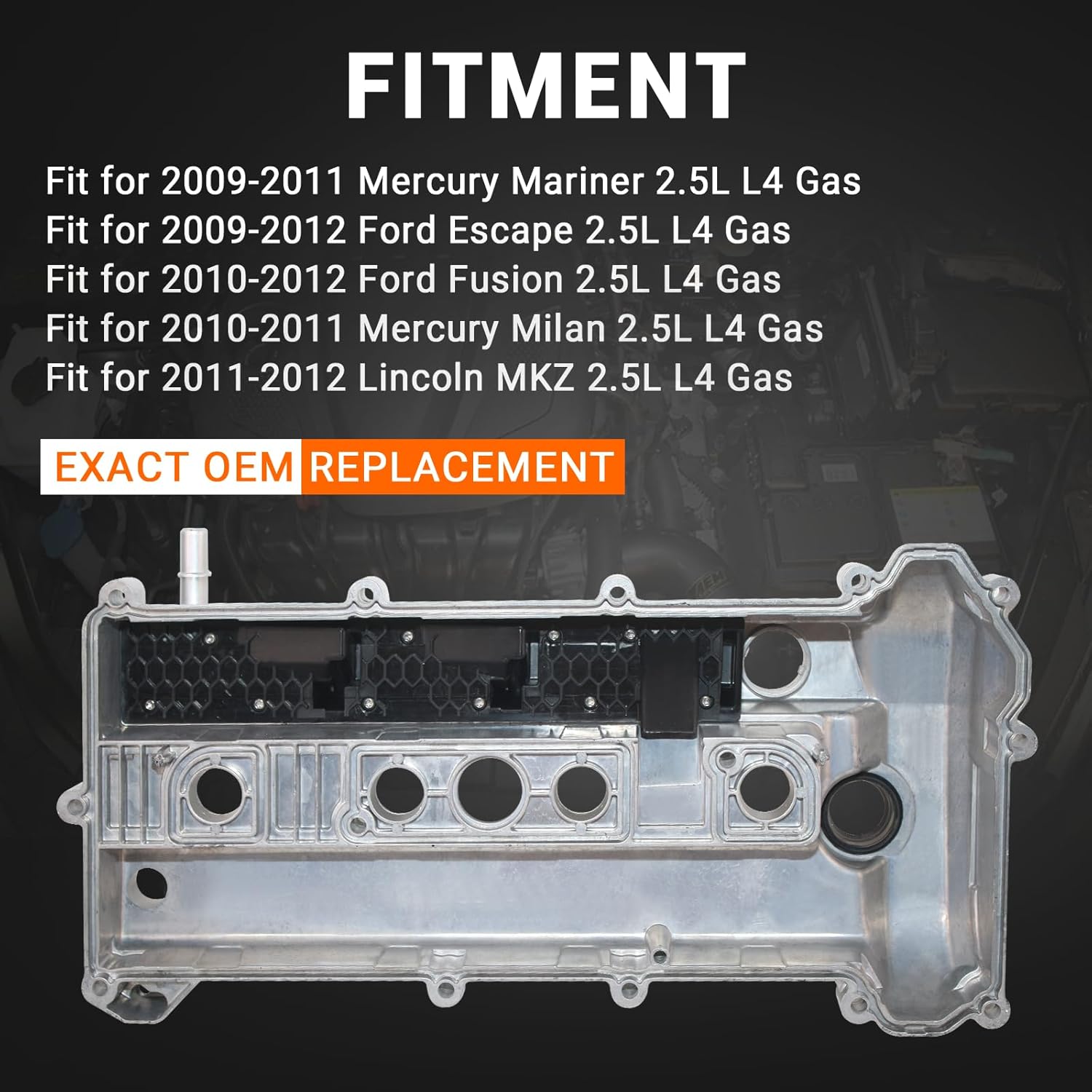 Além de ser compatível com o Mercury Mariner e o Ford Escape, esta tampa de válvula também se adapta aos modelos de 2010 a 2012 do Ford Fusion, 2010 a 2011 do Mercury Milan e 2011 a 2012 do Lincoln MKZ. O que você vê na imagem principal é exatamente o que você receberá, e estamos disponíveis para personalizações conforme sua necessidade.