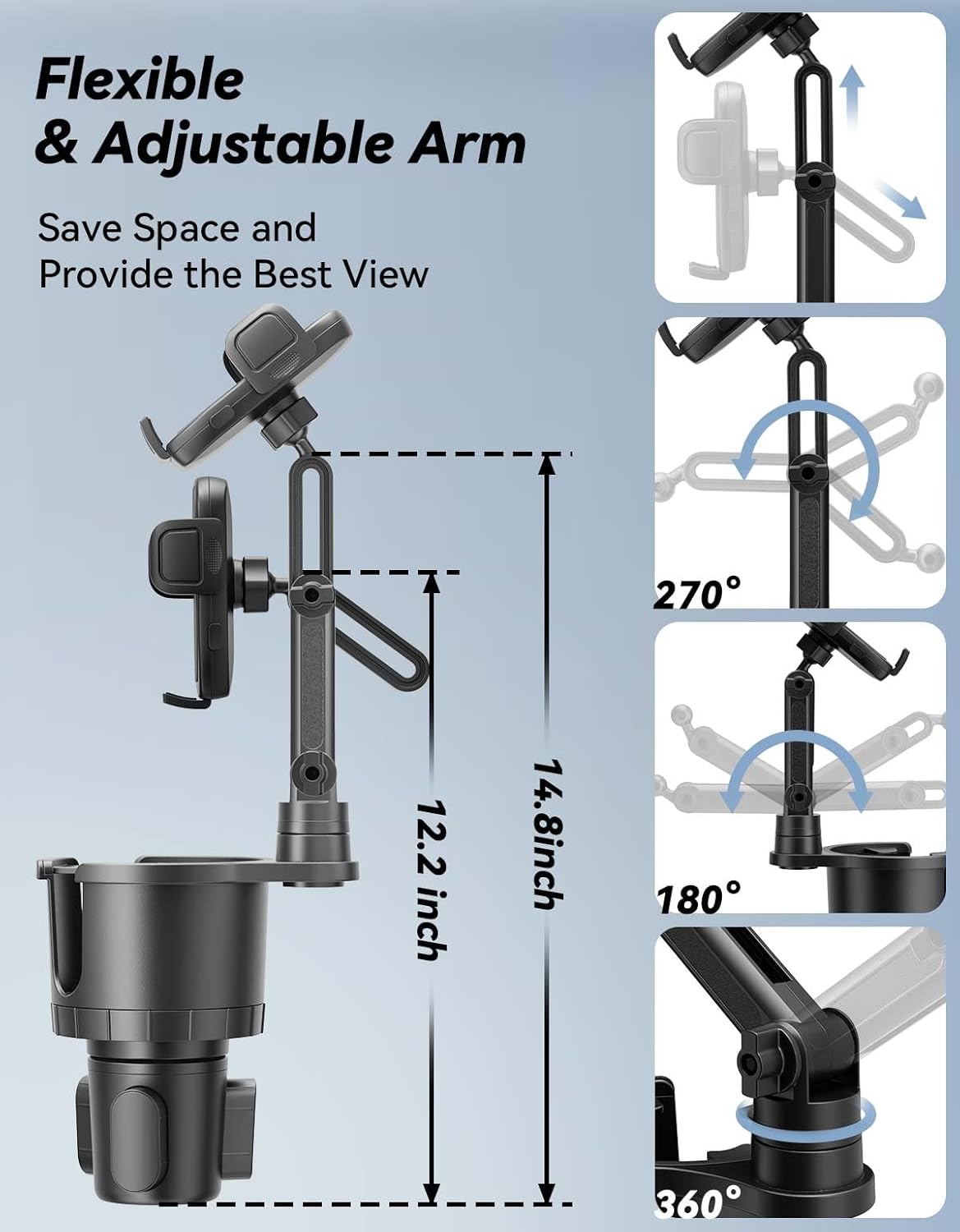 I bought this combo cell phone mount/cup holder for a vehicle I am borrowing from a friend. This is perfect! I can access my phone and drink easily. It was easy to assemble, and it is very sturdy. The cell phone is secure, and it is easy to move up or down and closer or further away. The cup holder is also sturdy. I mostly place a Brita water bottle I take to the gym, but it can also hold large Styrofoam drink cups. I am very happy with my purchase!