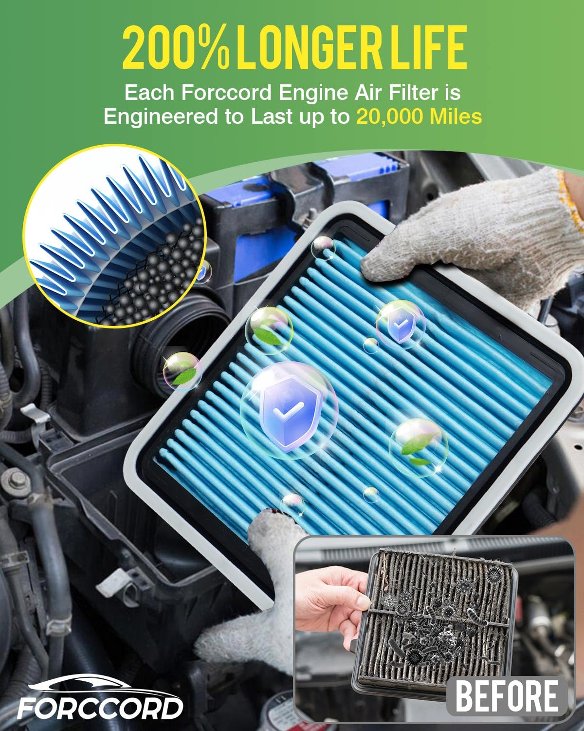 Com uma vida útil 200% maior em comparação aos filtros de ar do motor padrão, este produto utiliza papel filtrante HV avançado, que garante uma filtragem precisa, absorvendo 99,9% das impurezas, como pelos, partículas finas, poeira e flocos. Cada filtro é projetado para durar até 20.000 milhas, reduzindo a necessidade de substituições frequentes e proporcionando uma economia significativa a longo prazo.