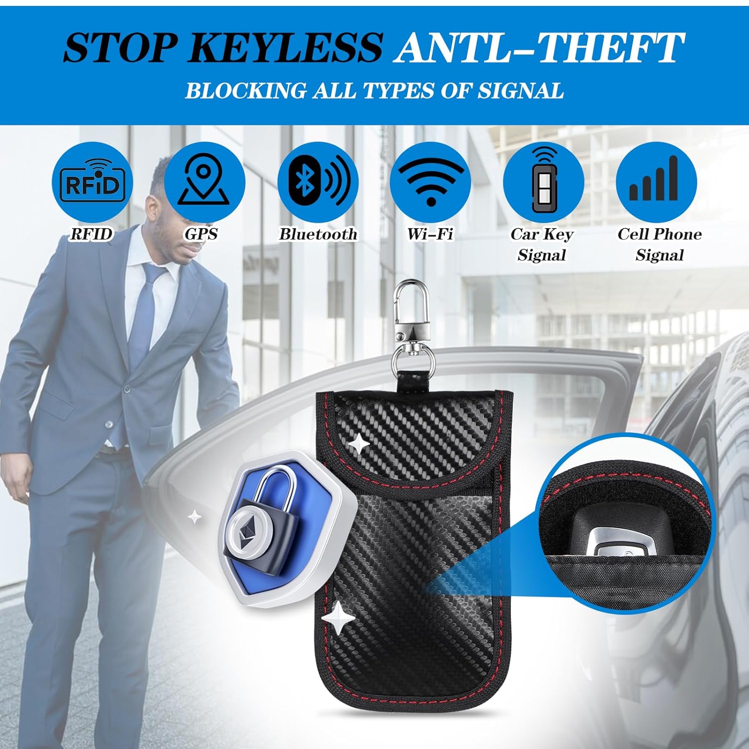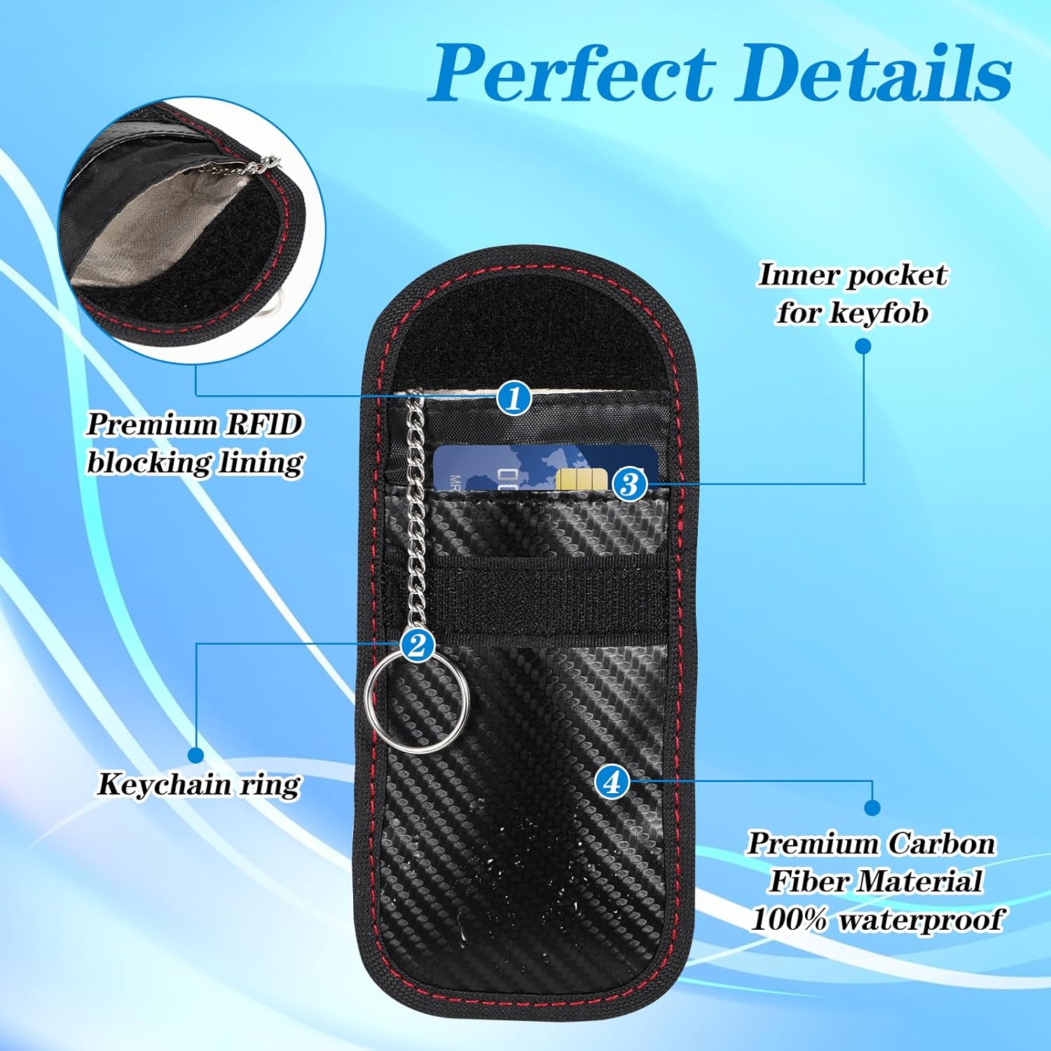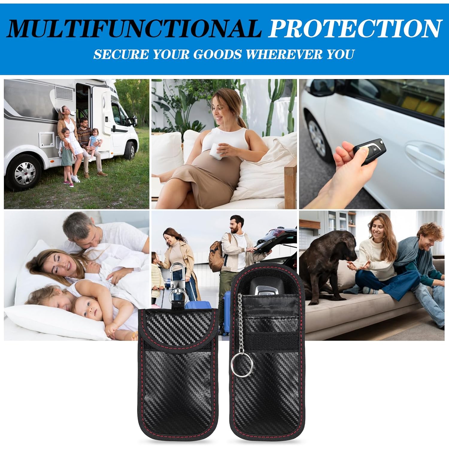 Pacote com 2 bolsas Faraday para chaveiro, projetadas para proteger a segurança do seu carro. Essas bolsas anti-furto bloqueiam sinais RFID, impedindo que ladrões capturem informações do seu chaveiro. Feitas de material resistente e com design discreto, oferecem proteção eficaz para veículos sem chave. Ideal para quem busca segurança adicional contra furtos.