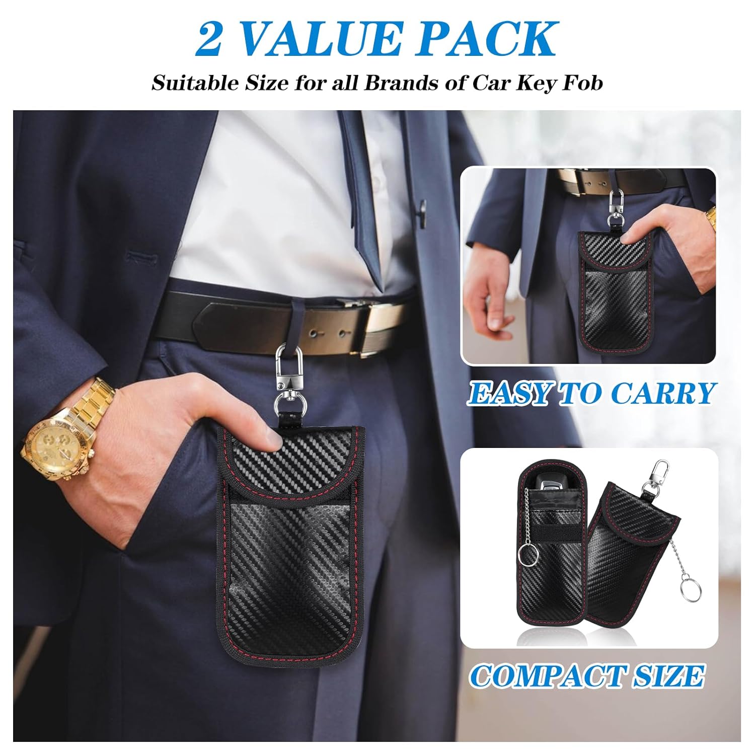 2 Pacote de Bolsas Faraday para Chaveiro - Protetor de Chaveiro Anti-Roubo, Bloqueador de Sinal RFID para Veículos Sem Chave - Estojo de Segurança Preto