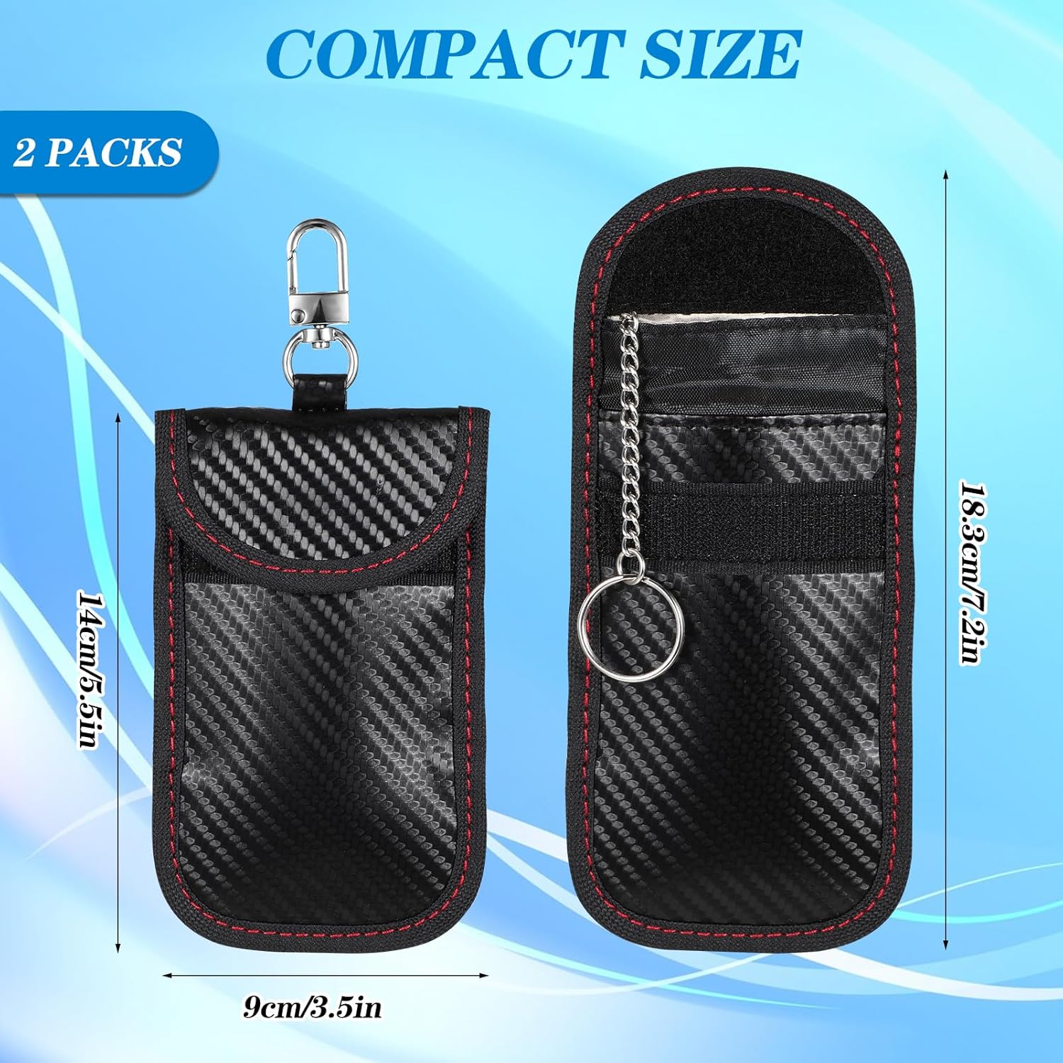 Pacote com 2 bolsas Faraday para chaveiro, projetadas para proteger a segurança do seu carro. Essas bolsas anti-furto bloqueiam sinais RFID, impedindo que ladrões capturem informações do seu chaveiro. Feitas de material resistente e com design discreto, oferecem proteção eficaz para veículos sem chave. Ideal para quem busca segurança adicional contra furtos.