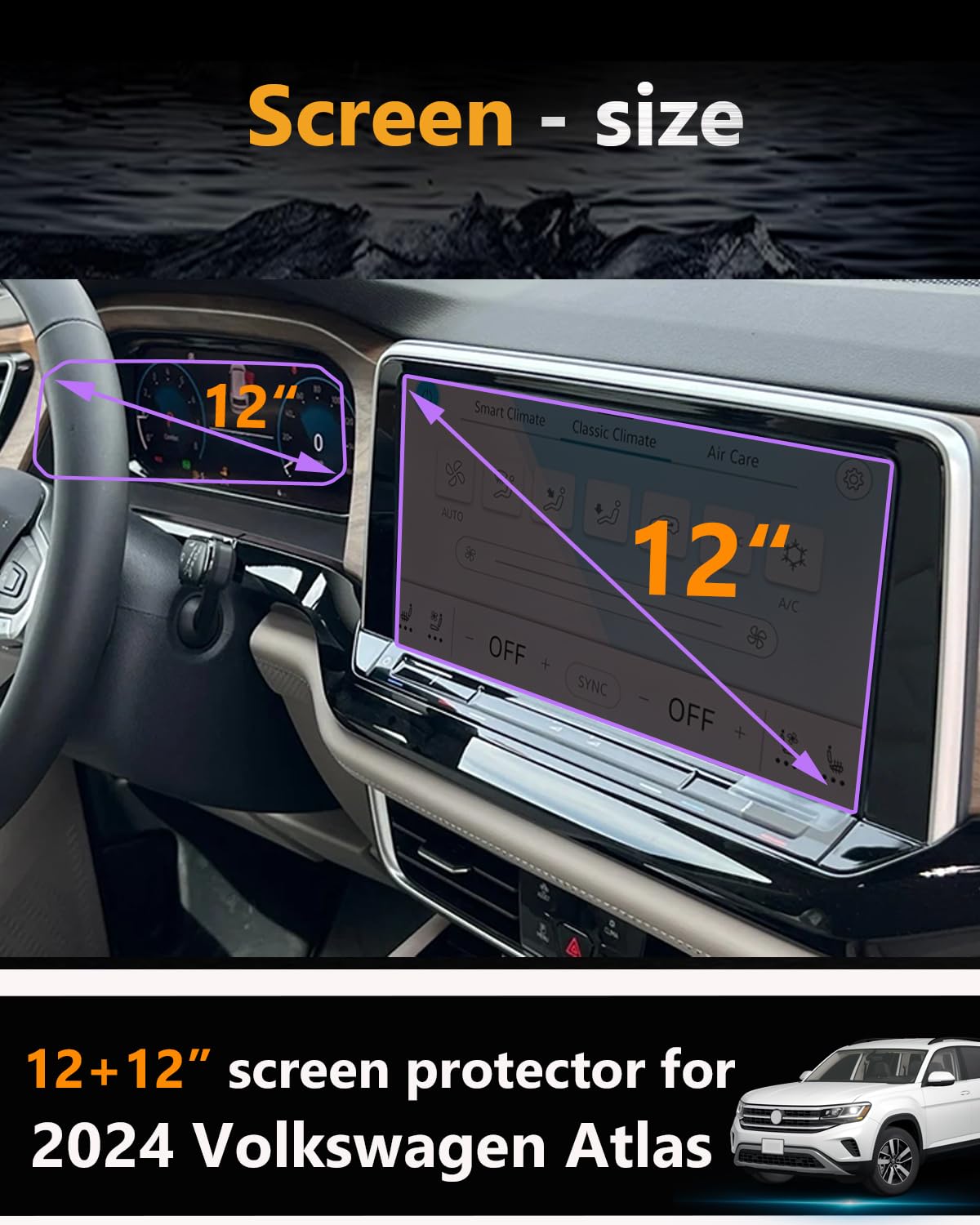 Protetor de Tela 2 Pack para Volkswagen Atlas 2024-2025, 12″ Infotainment