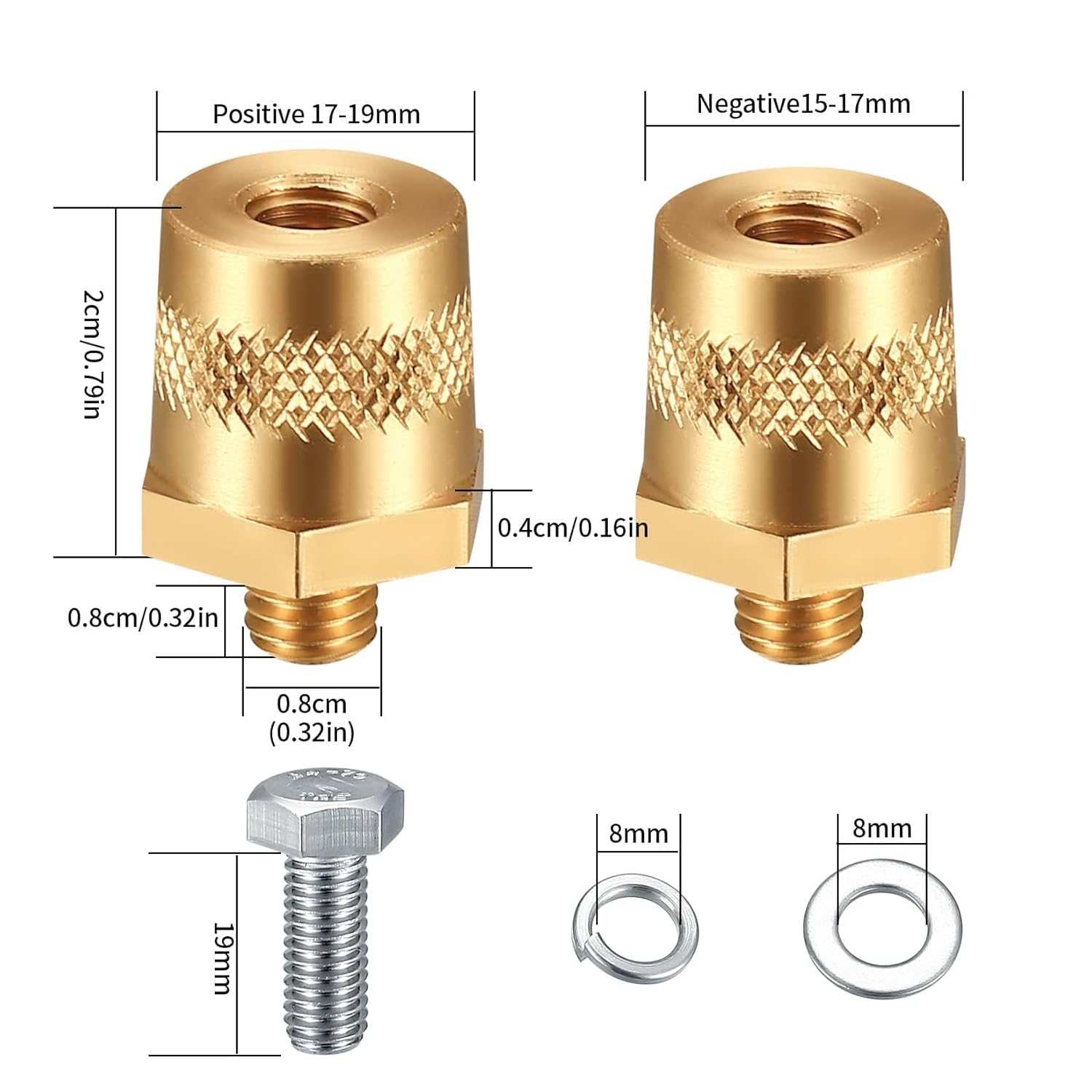 Conjunto de 2 Conectores de Terminais de Bateria - Adaptadores para Postes M8 de Carga, Extensores e Parafusos para Terminais de Bateria Auto