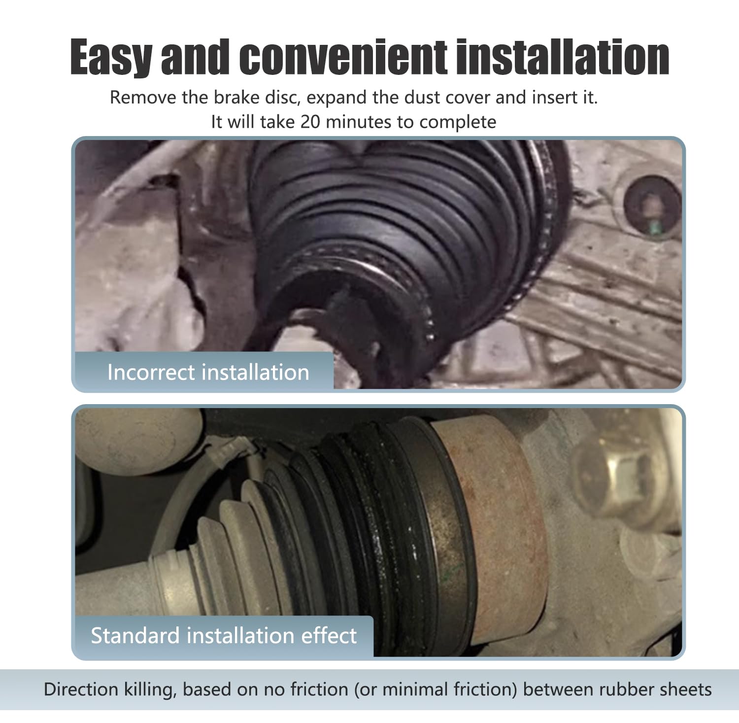 Kit de Capa de Poeira para Direção de Carro (2 PCS) com 8,78″ de comprimento, inclui capa de direção não destacável, 7,8″ de braçadeira e 2,49″ de clipe. Ideal para substituição e modificação, oferece proteção eficaz contra sujeira e detritos, aumentando a durabilidade do sistema de direção. Fácil de instalar, garante um ajuste seguro e confiável, melhorando o desempenho do veículo. Perfeito para quem busca manutenção e aprimoramento na direção do carro.