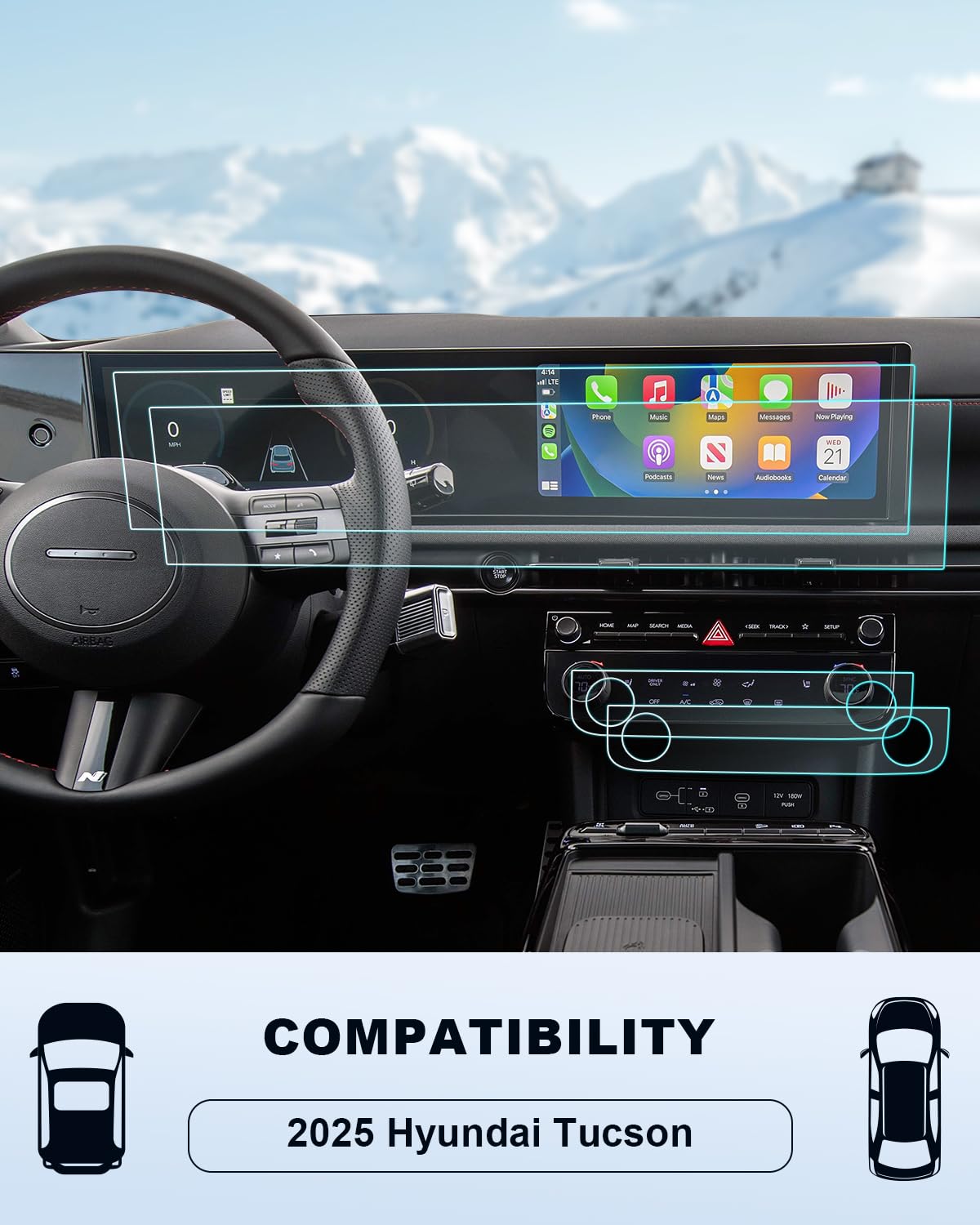 Protetor de Tela para Hyundai Tucson 2024 – (3 peças) Acessórios para Tucson 2022, 2023 e 2024 (SE/SEL/Hybrid SEL). Feito de vidro temperado 9H, oferece proteção superior contra arranhões e impactos. Compatível com telas de 8″ e 10,25″, garante clareza e sensibilidade ao toque, preservando a experiência do usuário. Fácil de instalar, mantém a tela limpa e livre de sujeira, aumentando a durabilidade do painel. Ideal para quem busca proteção e qualidade para o interior do veículo.