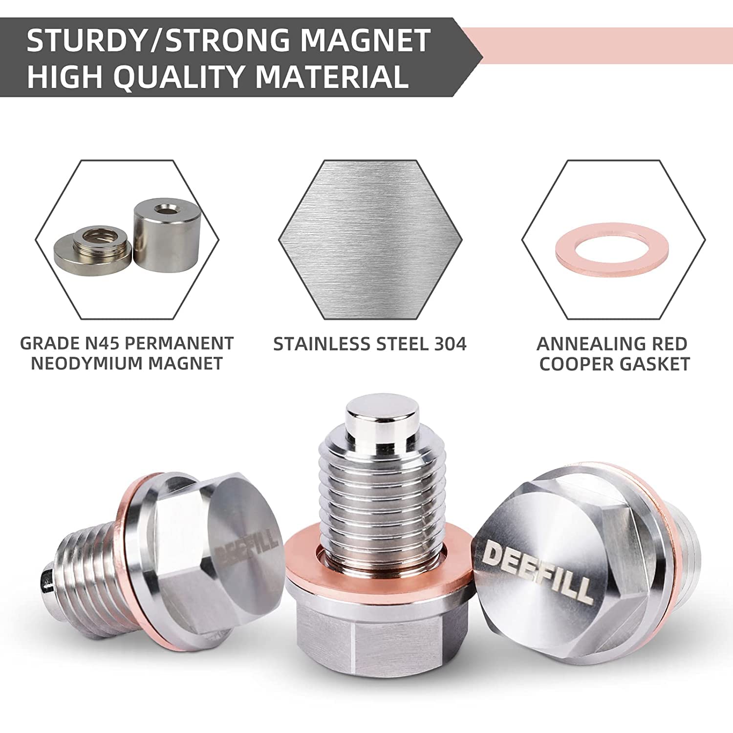 Note : I would suggest this to people who change their own oil as it is a challenge to screw in the bolt as the strong magnet is constantly pulling itself to the sides of the drain bolt hole. You have to hold it strong and slowly thread it in by hand all the way before torquing it to specs. Else, you might end up cross threading your drain threads.