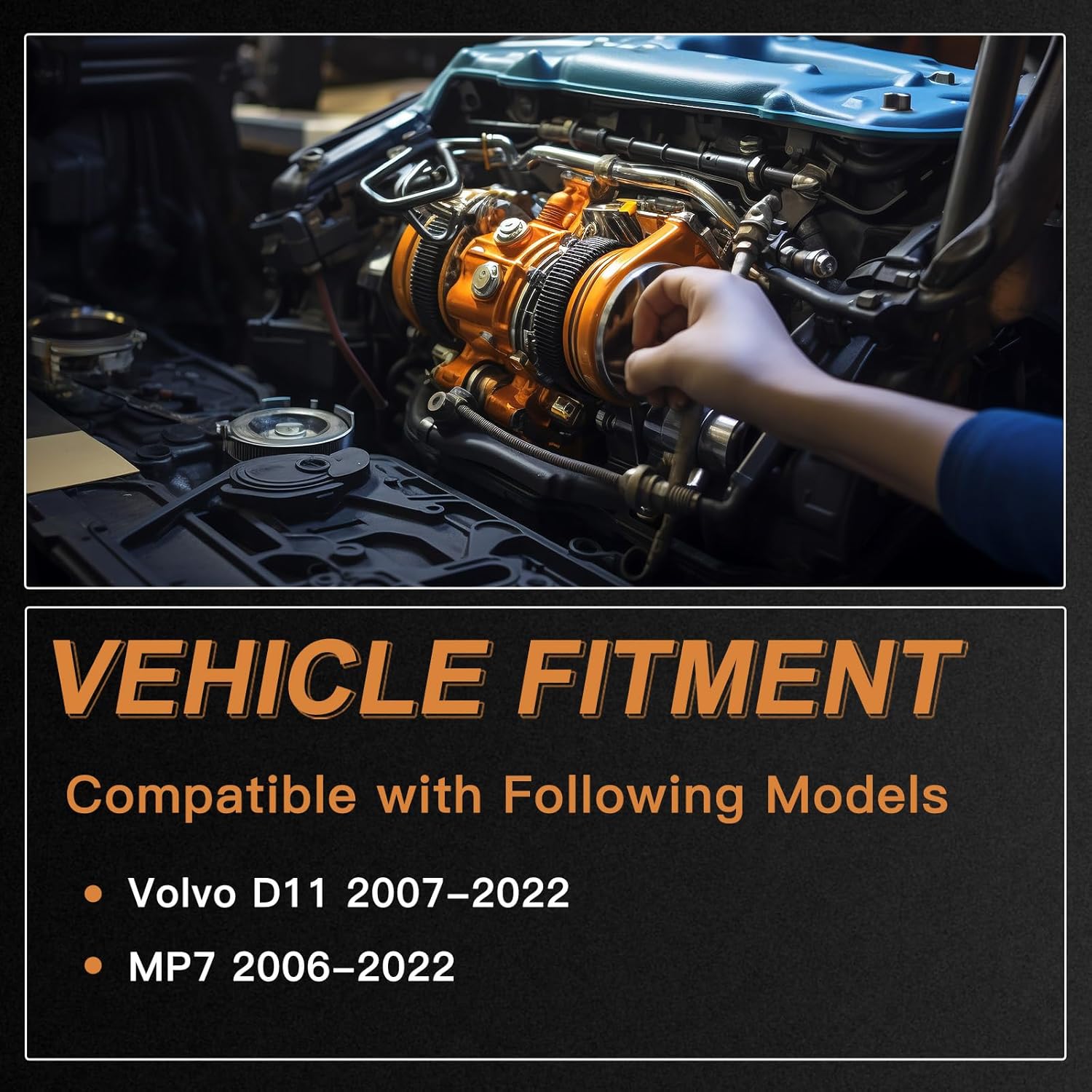 – Compatibilidade: Projetado para veículos Vo-l-vo VNL, VNR, VHD e Ma-c-k Anthem, Pinnacle, Granite com motores D11/MP7.