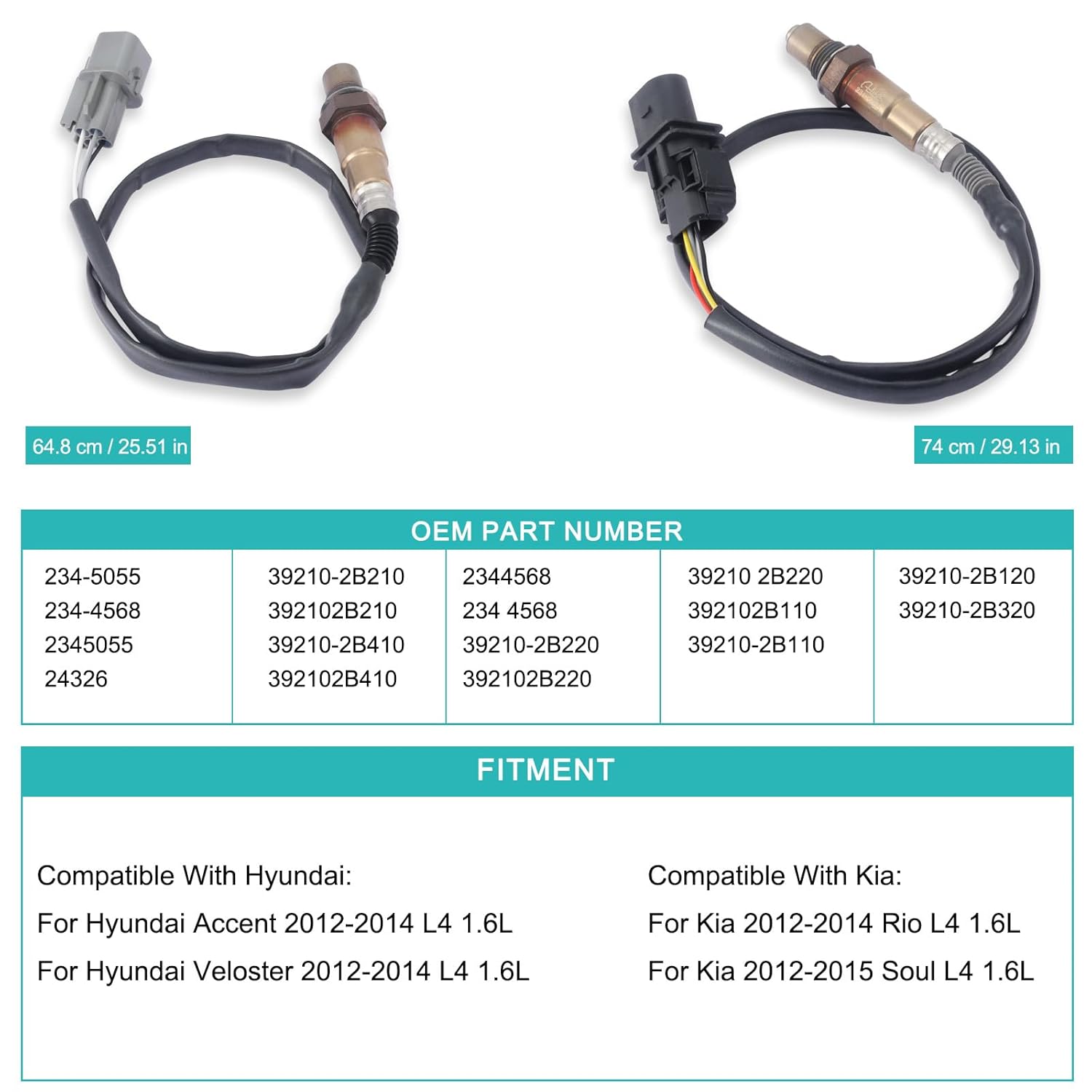 O Sensor de Oxigênio Upstream e Downstream 234-5055 e 234-4568 é a escolha ideal para quem busca qualidade e desempenho para os modelos Hyundai Accent (2012-2014), Veloster (2012-2014), Kia Rio (2012-2014) e Soul (2012-2015) com motor 1.6L L4. Este conjunto de sensores é projetado para otimizar a eficiência do motor, garantindo que a mistura de ar e combustível esteja sempre na proporção ideal, resultando em melhor desempenho e economia de combustível.