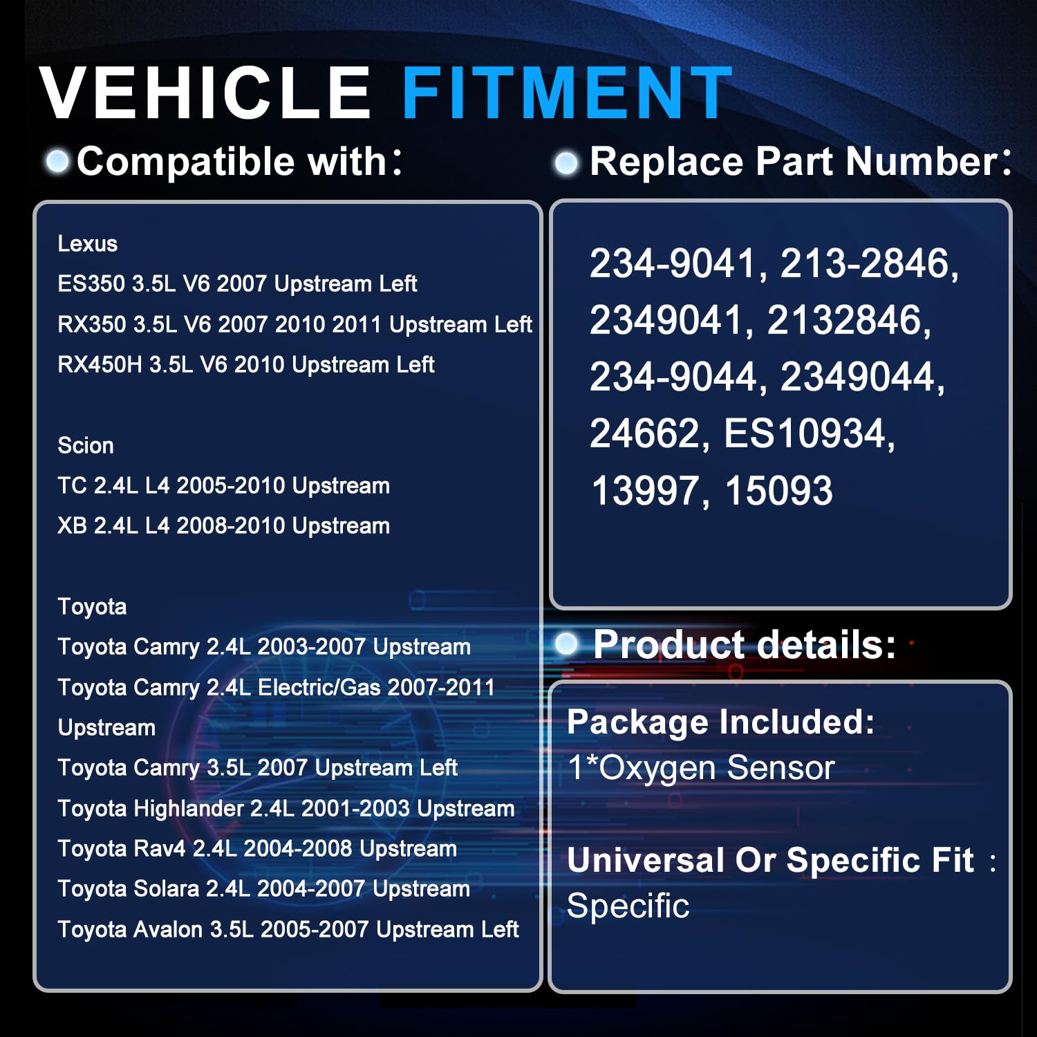 Sensor de Oxigênio O2 234-9041 Upstream Compatível com Lexus ES350 RX350, Toyota Camry, Highlander, RAV4, Solara, Avalon, Scion TC e XB 2.4L 3.5L – Substitui 213-2846