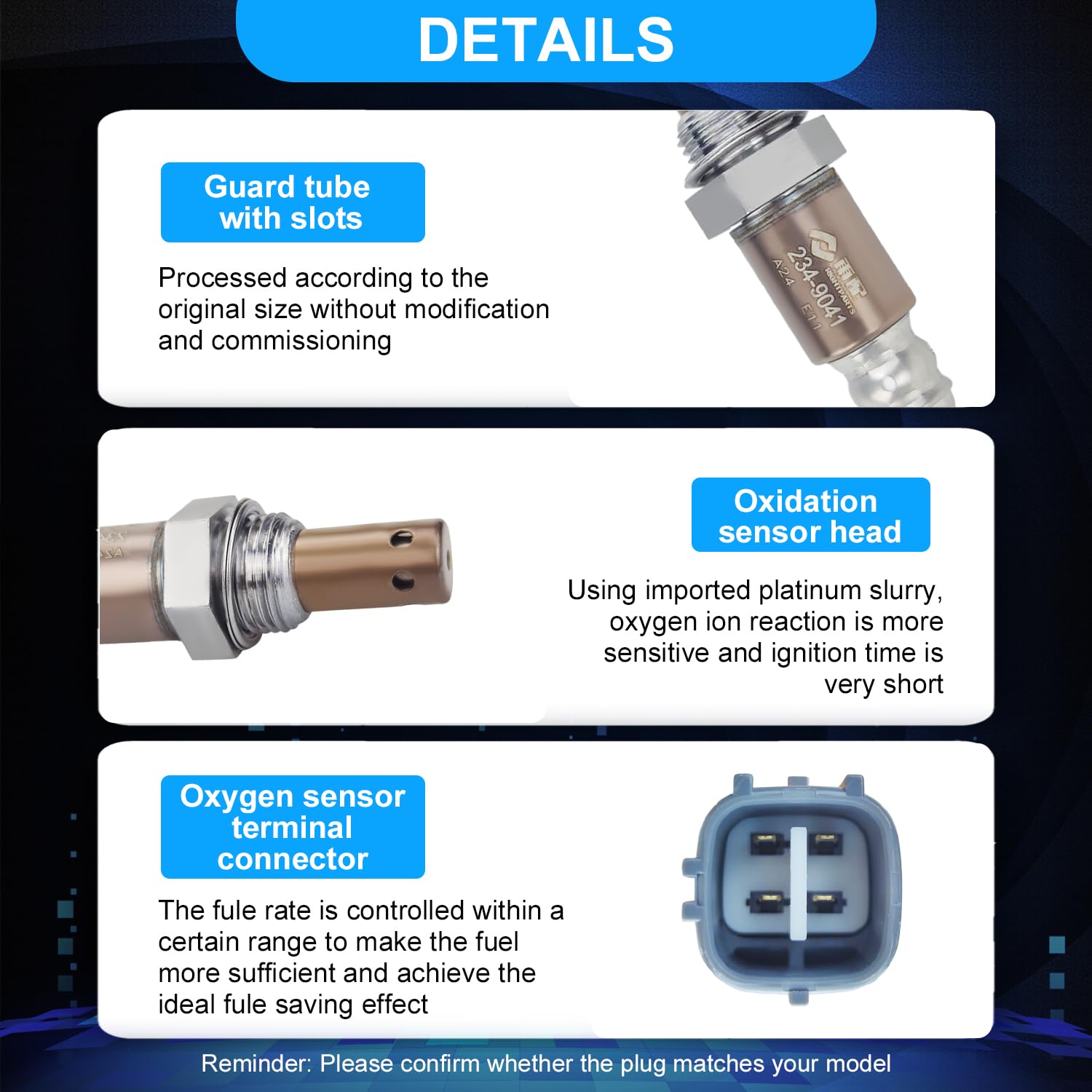 Antes de adquirir o sensor de oxigênio, é fundamental verificar o ano, modelo e o número da peça intercambiável para confirmar a compatibilidade. Os números de referência incluem: 234-9041, 213-2846, 2349041, 2132846, 234-9044, 2349044, 24662, ES10934, 13997 e 15093.