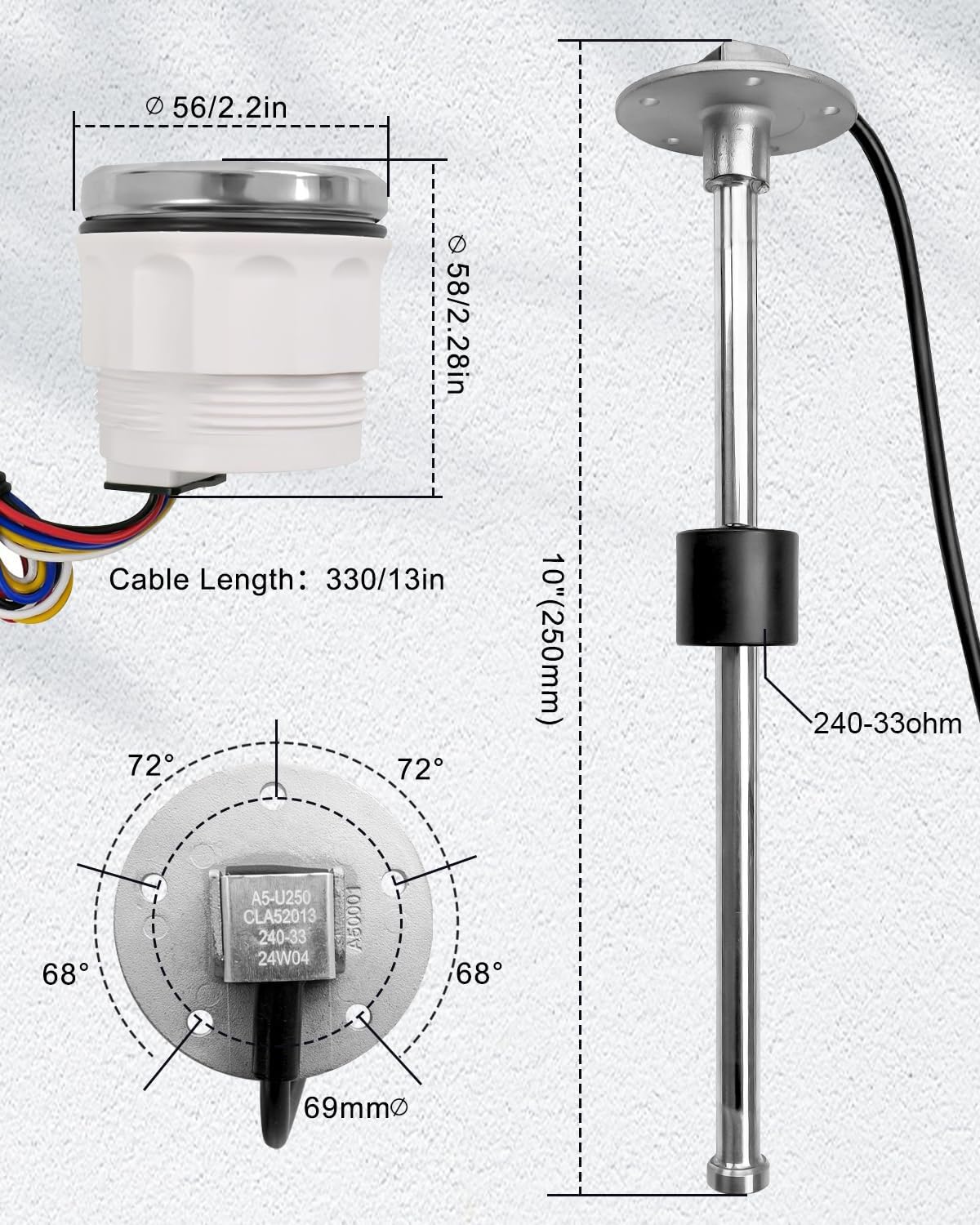 11 avaliações para Unidade de Envio de Combustível 240-33ohm 12.5″ / 318mm para Barco Marinho, RV, Caminhão e Carro – Sensor de Nível de Tanque em Aço Inoxidável