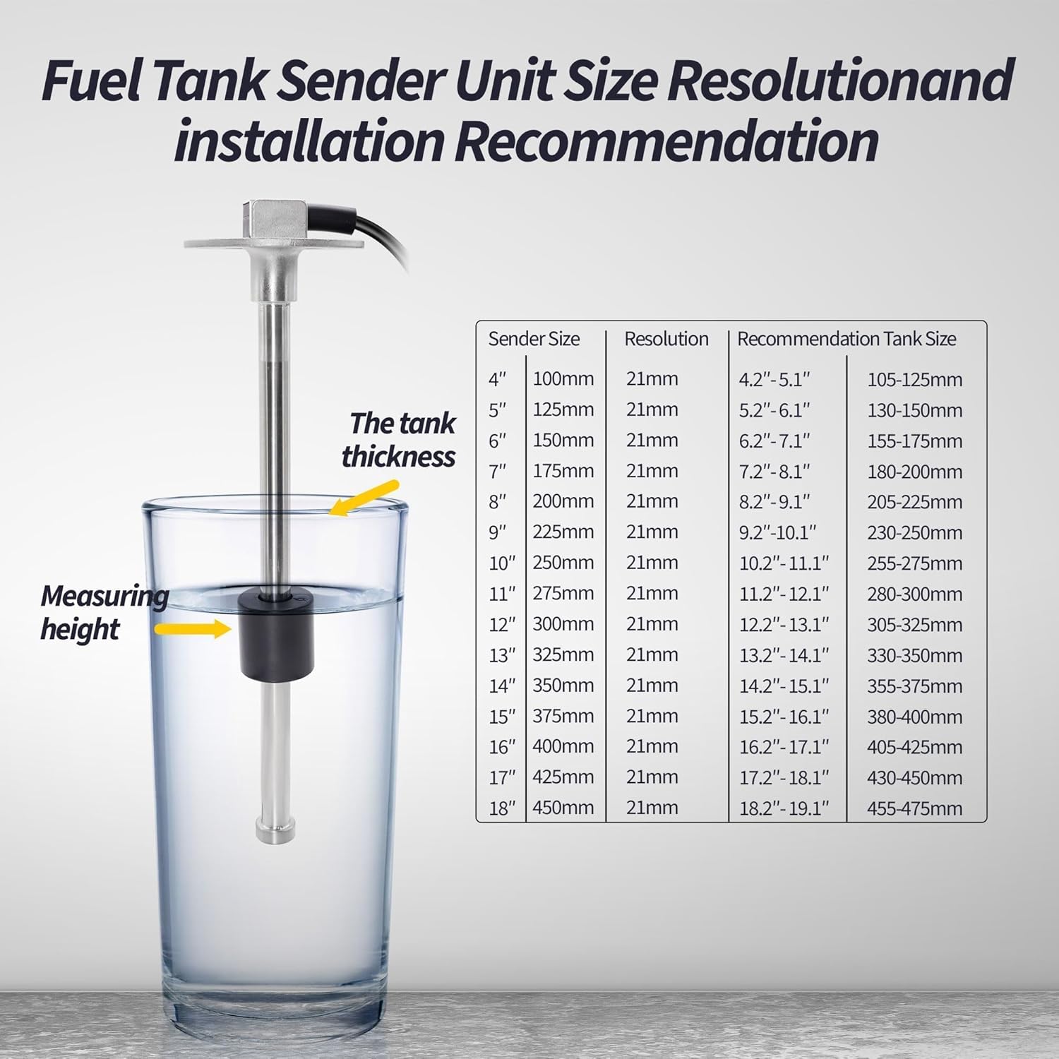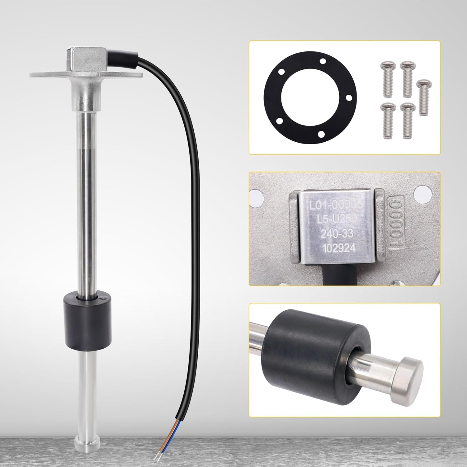 Com um tamanho de 10″ (250mm) e fabricado em aço inoxidável 316, este sensor é resistente a choques e quedas, oferecendo uma durabilidade superior. O sinal de saída do dispensador de combustível marinho é de 240-33 ohms, onde 240 ohms é a leitura sem carga e 33 ohms é a leitura em carga total, permitindo uma medição precisa do nível de combustível.