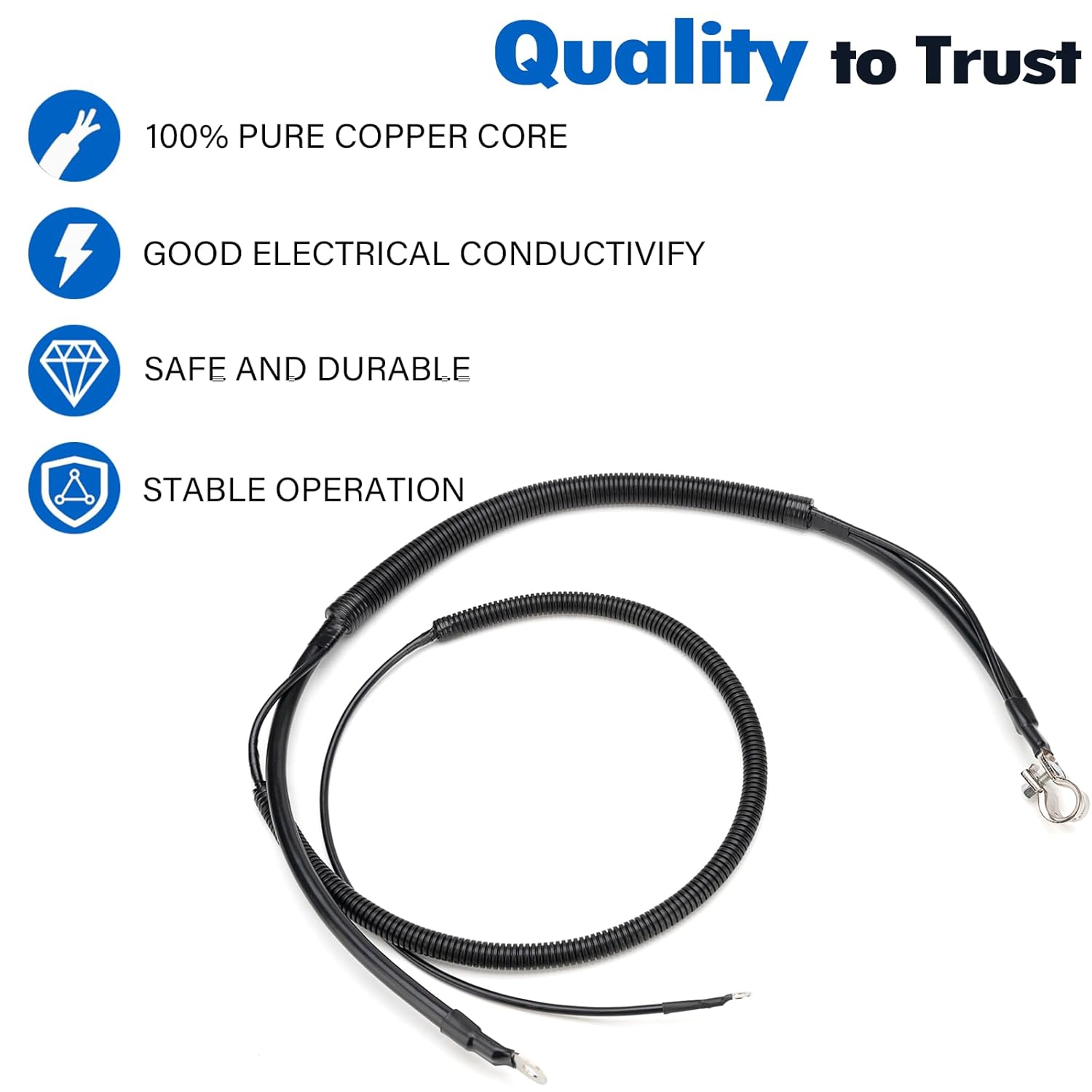 Os terminais e conexões do cabo são revestidos com cobre estanhado, que não só melhora a condutividade térmica, mas também aumenta a ductilidade, permitindo uma instalação mais fácil e segura. A instalação é simples e direta, com um design ultra-flexível que se adapta mesmo nas condições mais extremas, tornando-o forte o suficiente para a maioria das aplicações automotivas.