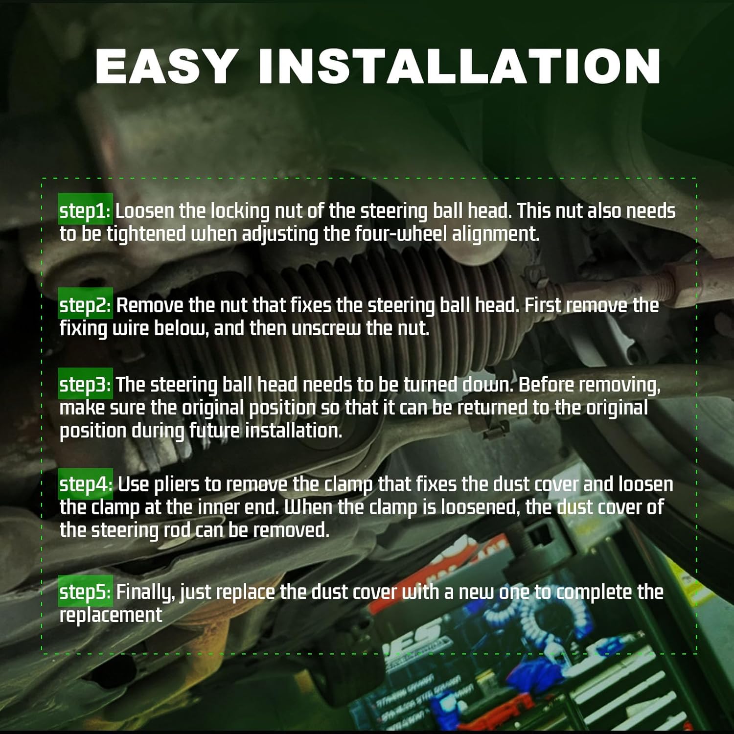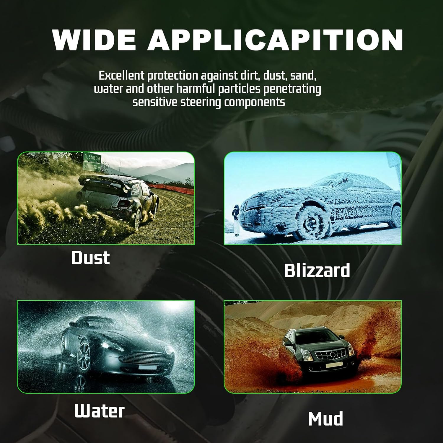 O kit de capas de direção e pinhão é convenientemente projetado para proteger o sistema de direção do seu veículo contra poeira e detritos. A instalação é rápida e simples, permitindo que você economize tempo e esforço, além de aumentar a segurança e a durabilidade da sua experiência de condução.