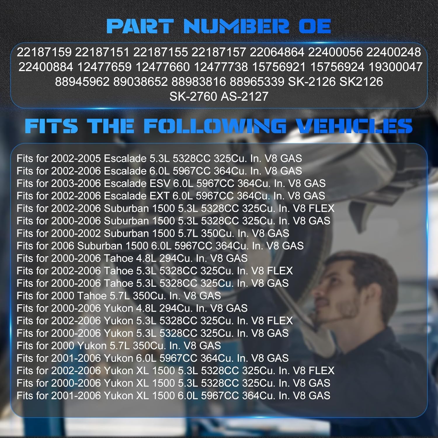 - REPLACE PART: Air Suspension Strut OE Number: 22187159, 22187151, 22187155, 22187157, 22064864, 22400056, 22400248, 22400884, 12477659, 12477660, 12477738, 15756921, 15756924, 19300047, 88945962, 89038652, 88983816, 88965339, SK-2126, SK2126, SK-2760, AS-2127.