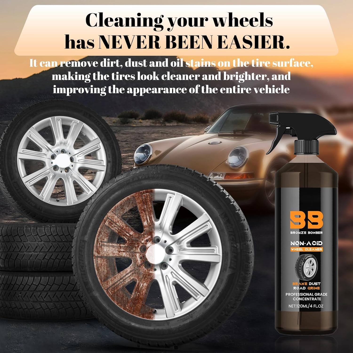 Kit 2PCS Limpador de Rodas Bronze Bomber 120ML - Limpador Potente e Não Ácido para Rodas e Pneus, Seguro para Liga Leve