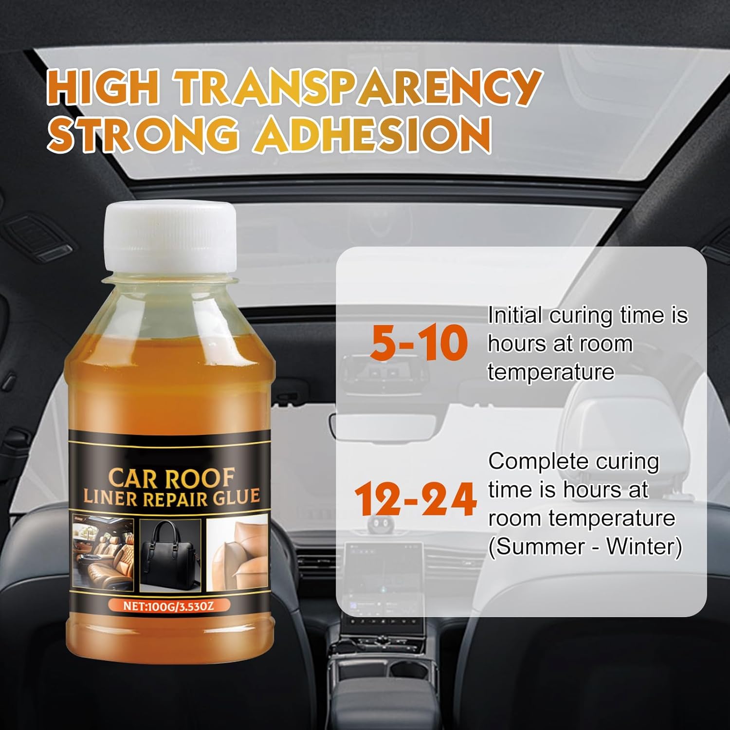 Versátil, o 2PCS Car Headliner Repair Adhesive é ideal para transformar e reparar uma variedade de materiais, incluindo estofados de carro, couro, esponjas, lona e sofás. Sua alta transparência e forte adesão fazem dele a escolha perfeita para qualquer estação do ano. O tempo de cura inicial é de apenas 5 a 10 horas em temperatura ambiente, enquanto a cura completa leva de 12 a 24 horas, permitindo que você retome o uso do seu veículo rapidamente.
