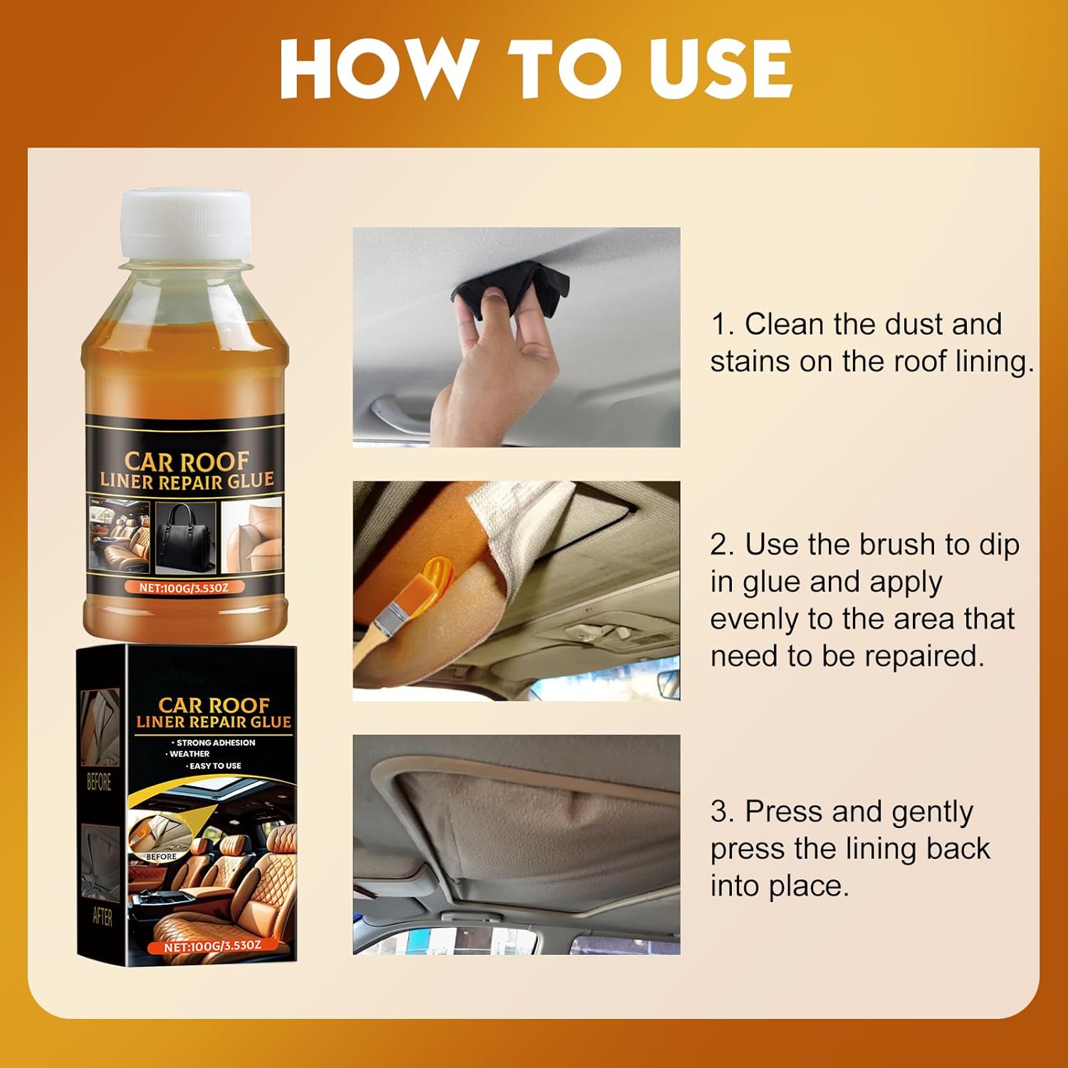 I just bought the Car Roof Liner Repair for the second time, and I’m absolutely loving it! This stuff really gets the job done. The adhesive is super strong, weather-resistant, and incredibly easy to apply.