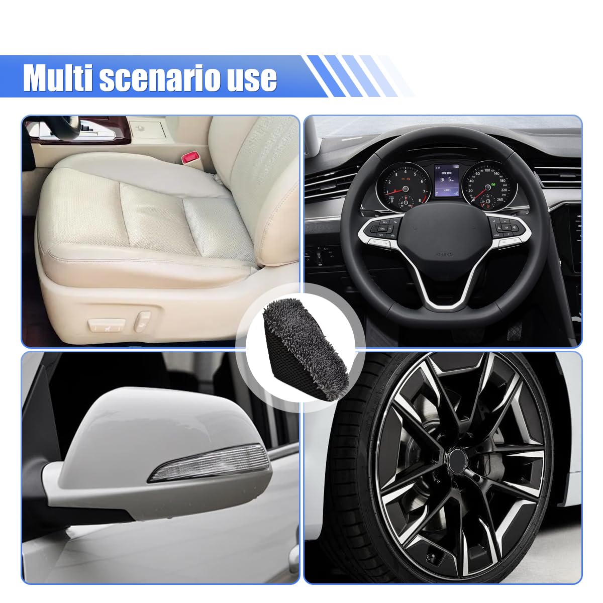 Versátil, essa esponja pode ser utilizada tanto molhada quanto seca, sendo ideal para a limpeza de apoios de braço, assentos, saídas de ar, painéis, consoles centrais, janelas, pneus e outras superfícies lisas, tanto no interior quanto no exterior do carro.