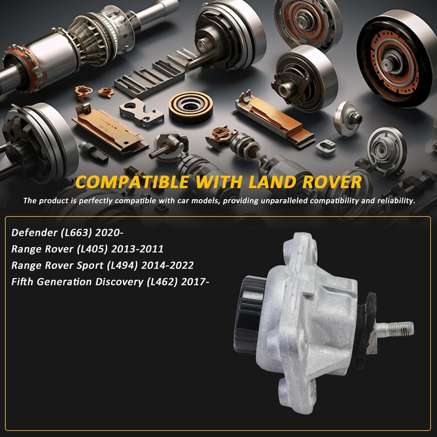 O suporte de motor 2PCS Engine Mount Left é a solução ideal para quem busca qualidade e durabilidade na fixação do motor de veículos Land Rover. Com um design robusto e materiais de alta resistência, este produto é compatível com diversos modelos, incluindo o Land Rover Range Sport L663 (2020-2022), L322 (2010-2012), L405 (2013-2021), L494 (2014-2022) e L462 (2017-2020).
