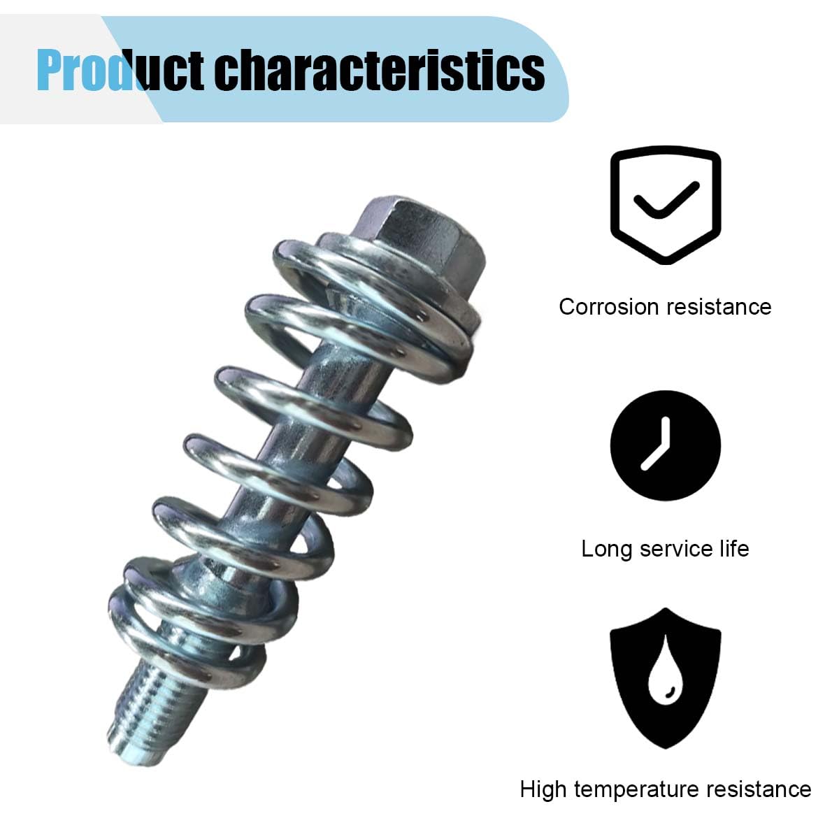- 【Mola Absorvedora de Choque】: Este parafuso automotivo apresenta uma mola exclusiva com capacidade de absorção de vibrações, garantindo uma conexão estável e reduzindo os efeitos de impacto das vibrações em componentes fixos. Em condições de alta temperatura, a mola se adapta por meio de sua extensão ou compressão, mantendo o desempenho ideal do sistema e prolongando sua vida útil.
