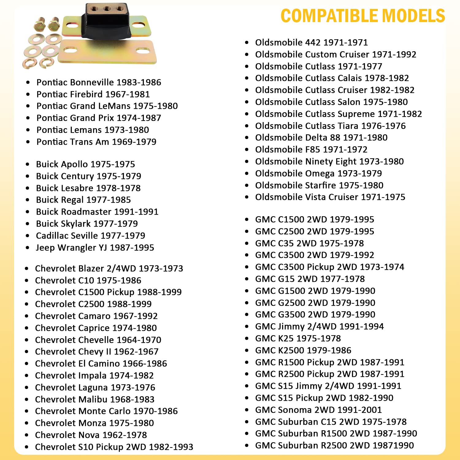 – Compatibilidade: Projetada para veículos Buick, Chevrolet, GMC, Jeep Wrangler YJ, Oldsmobile e Pontiac.