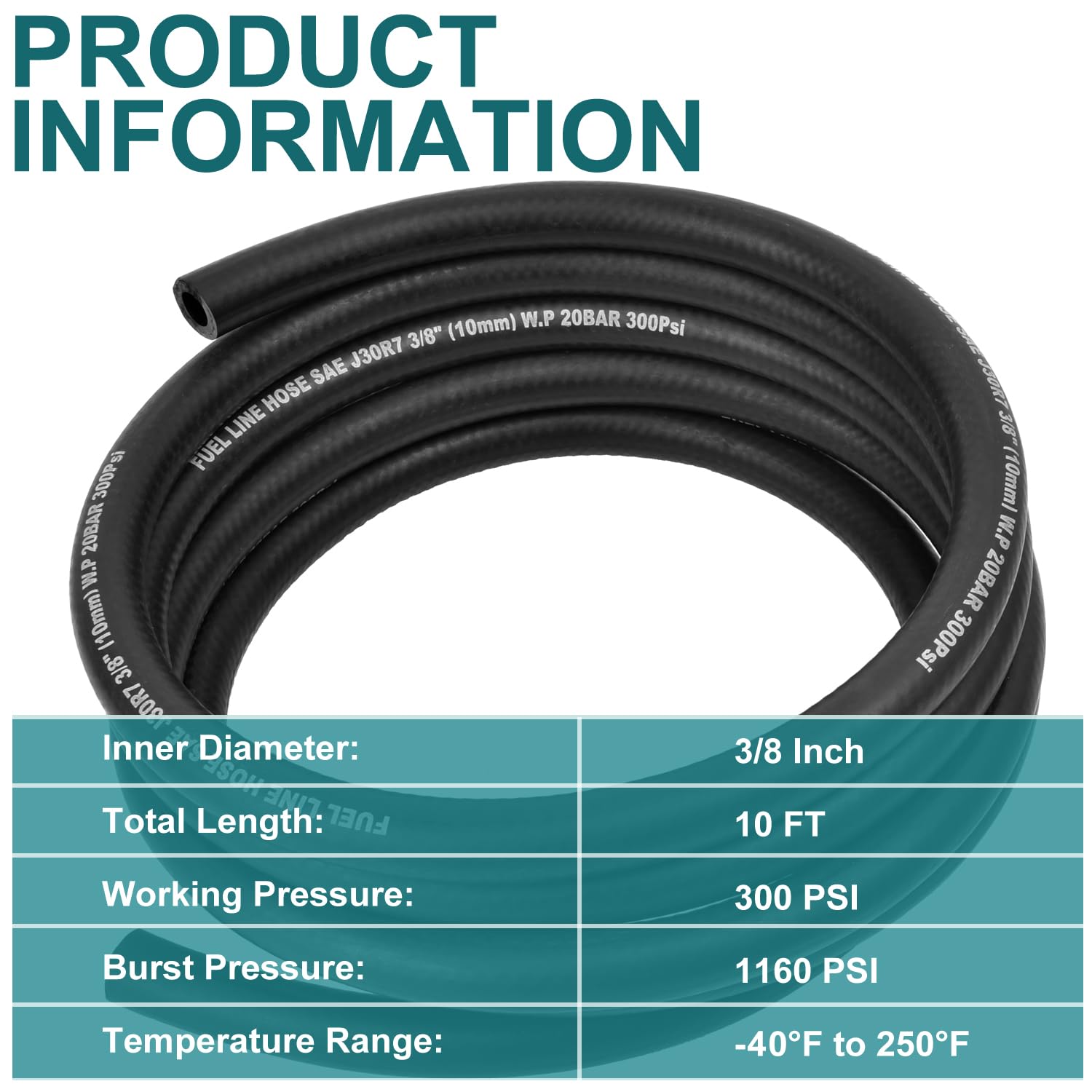 Descrição do Produto: Mangueira de Combustível 3/8 Polegadas (10mm) ID, 10FT Push Lock NBR Rubber Hose