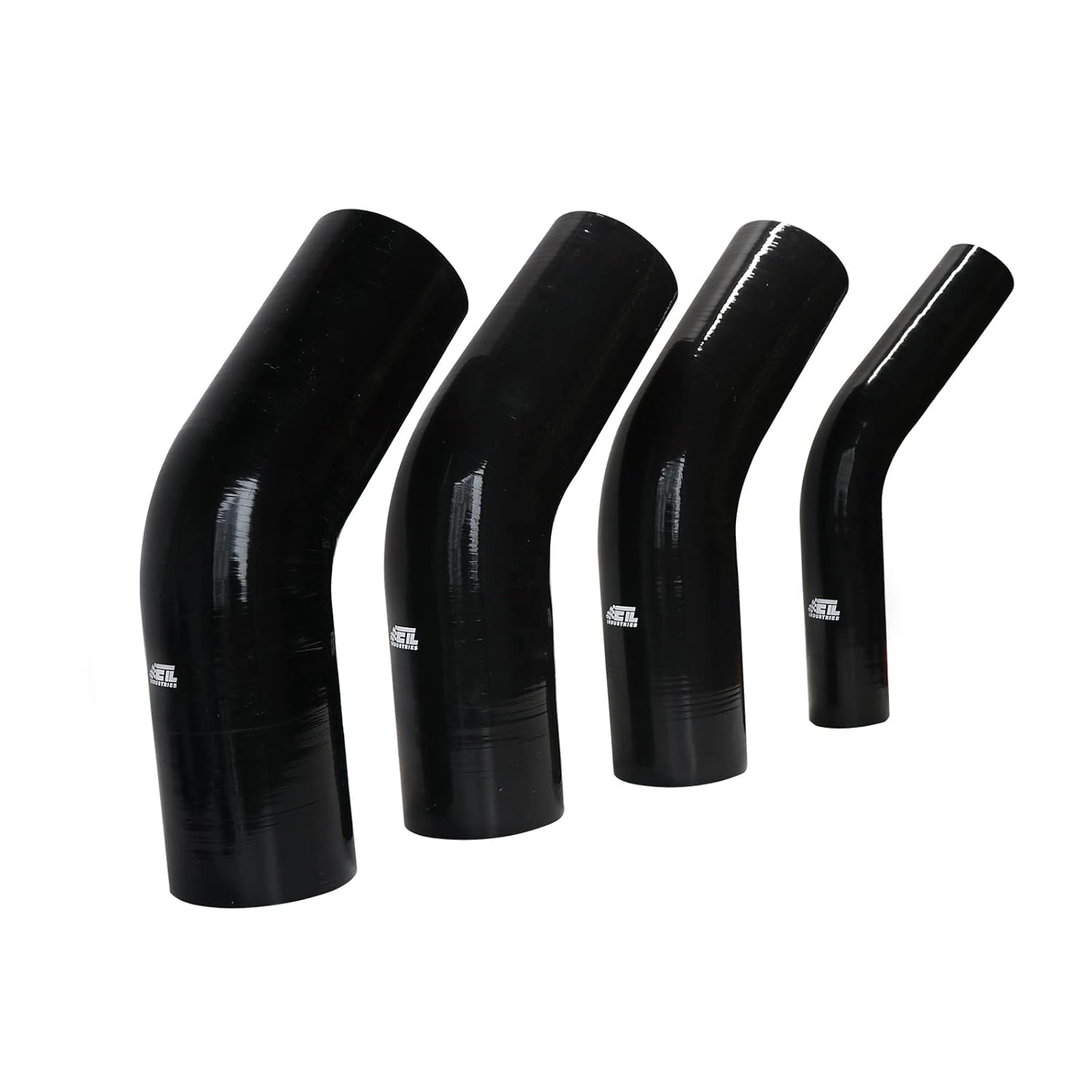 Apresentamos o Mangueira de Silicone com Curva de 45 Graus, um componente essencial para quem busca eficiência e durabilidade em sistemas de admissão e resfriamento. Com um diâmetro interno de 3 polegadas (76mm) e um comprimento de perna de 6 polegadas (152mm), esta mangueira é projetada para atender às mais rigorosas exigências de desempenho em aplicações automotivas, industriais e marinhas.