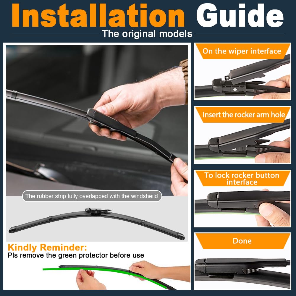 – Desempenho Durável: Com um quadro moldado duro e uma mola de aço inoxidável mais forte, esses limpadores oferecem desempenho durável em todas as estações e condições climáticas.