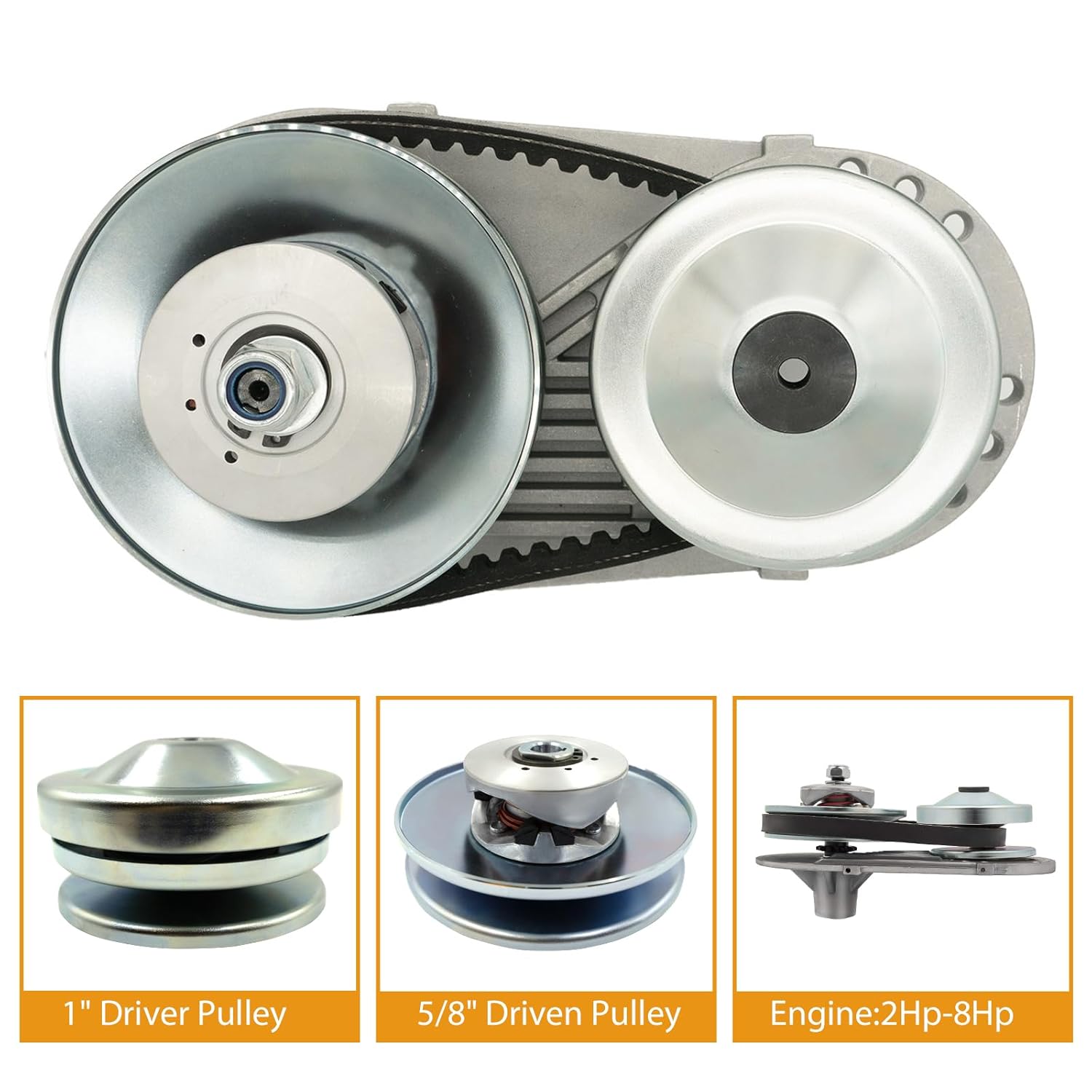 O kit inclui um polia motora de 1″ e uma polia de 5/8″, além de um cinto de transmissão e duas opções de engrenagens: uma engrenagem de 12 dentes para corrente #35 e uma de 10 dentes para correntes #40/41/420. O design assimétrico da série 30 garante uma entrega de potência eficiente, com uma faixa de engajamento de 2350±200 RPM, permitindo uma aceleração suave e responsiva.