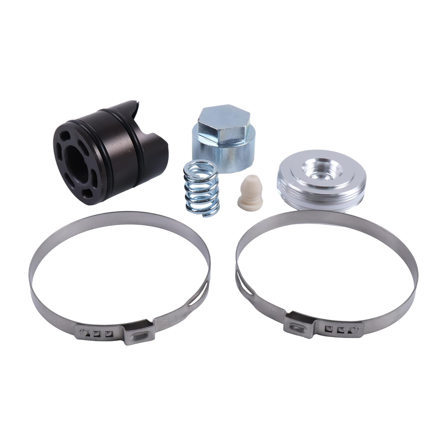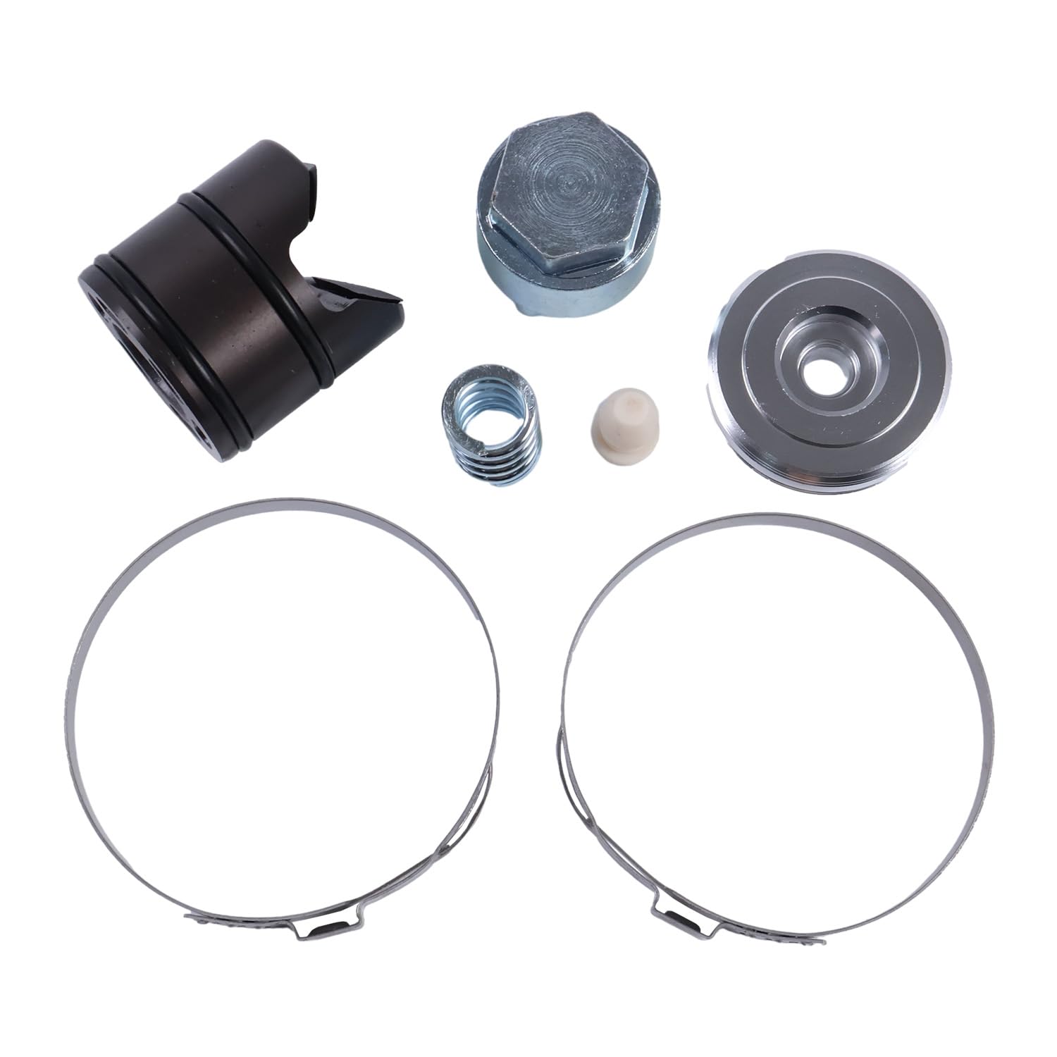 Resposta: O kit é feito de materiais de alta qualidade, incluindo borracha, metal e plástico, que são resistentes ao desgaste, corrosão, calor e óleo.