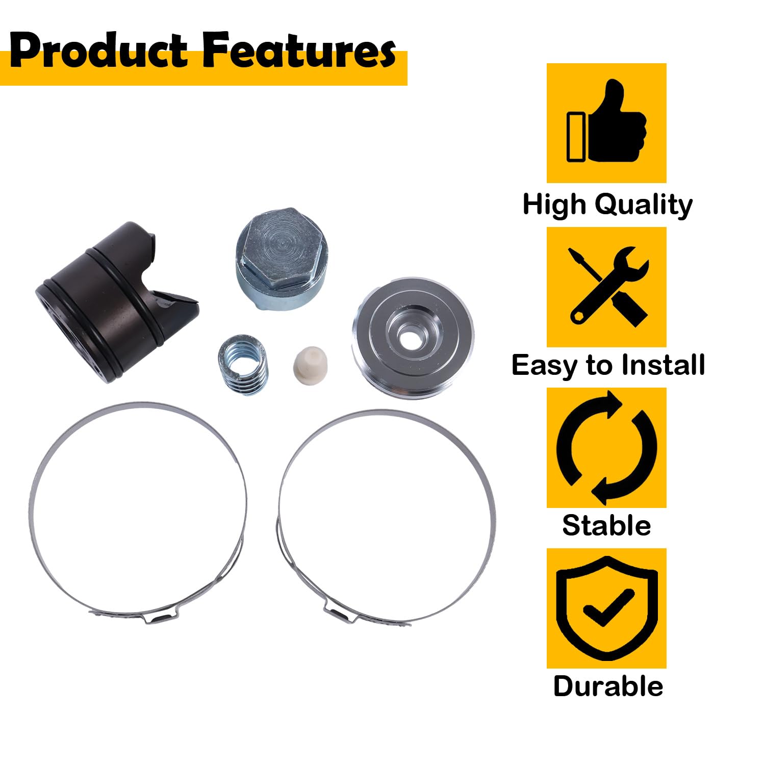 – Material: Composto por borracha, metal e plástico de alta qualidade, resistente ao desgaste, corrosão, calor e óleo.