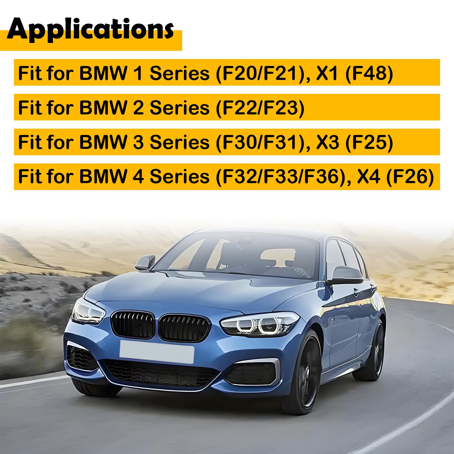 – Compatibilidade: Projetado para modelos BMW 1 Series (F20/F21), 2 Series (F22/F23), 3 Series (F30/F31), 4 Series (F32/F33/F36), X1 (F48), X3 (F25), X4 (F26).