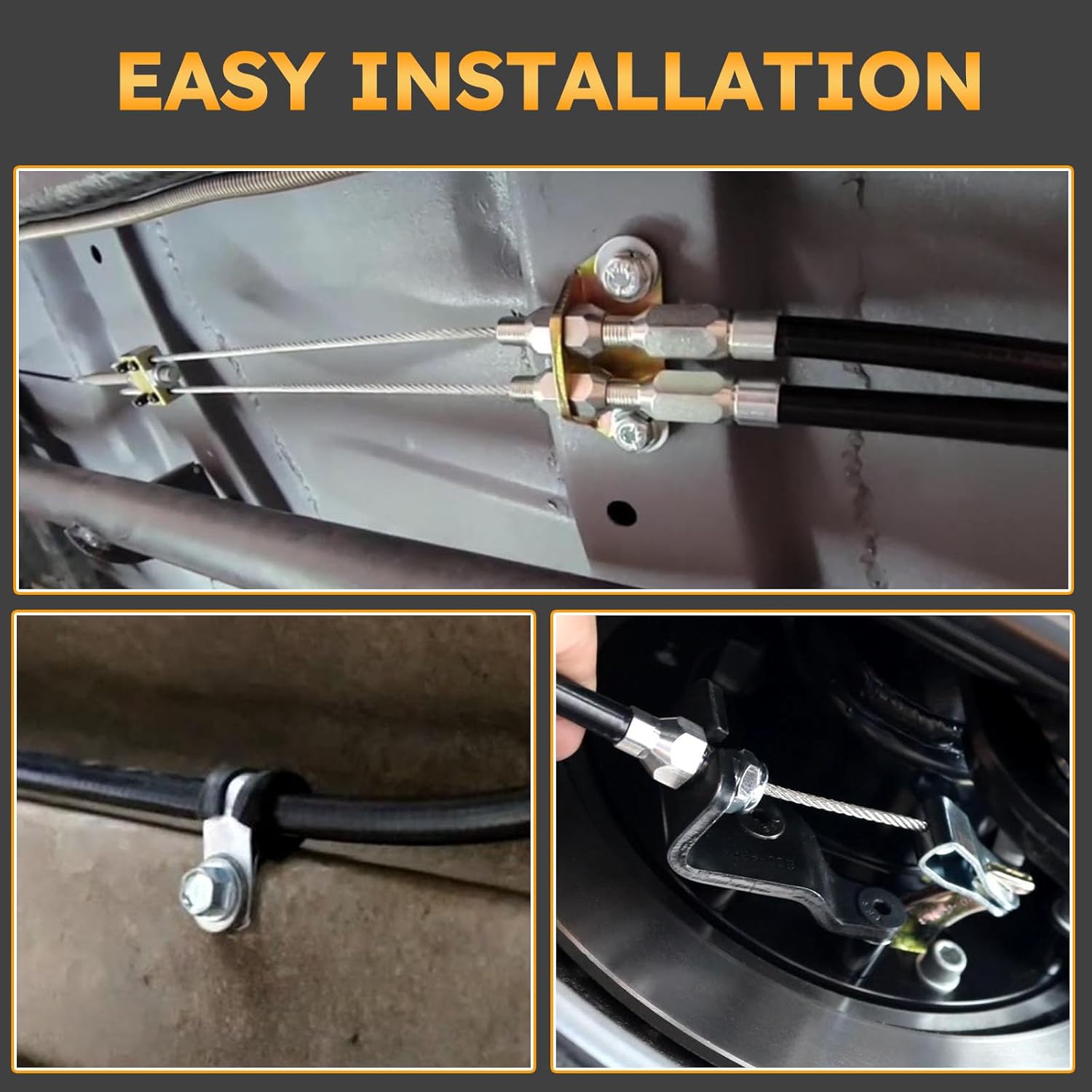 Com cabos de 110 polegadas de comprimento e uma capa de 97 polegadas, o kit oferece um comprimento ideal para a instalação em diversas configurações de veículos. O design dos cabos permite uma operação suave e um engajamento eficaz do freio de emergência, aumentando a segurança e o controle durante o estacionamento, especialmente em inclinações.