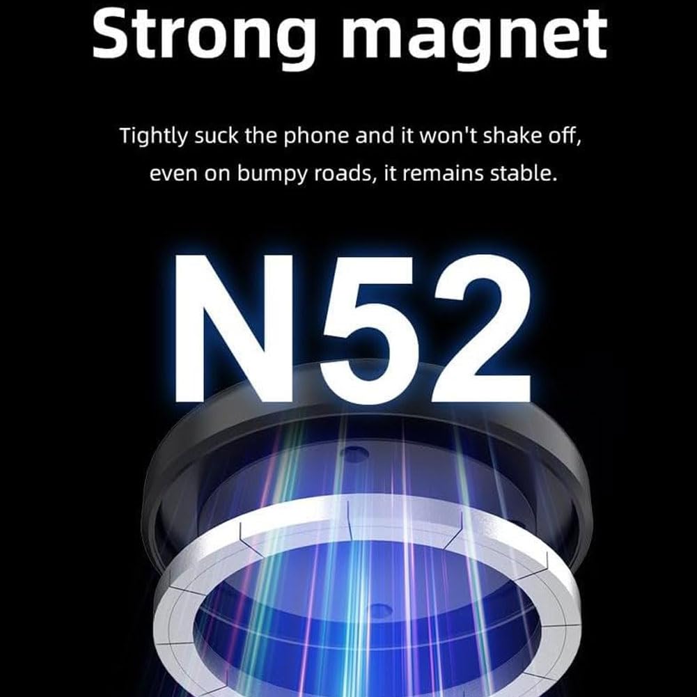 Equipado com um poderoso sistema de fixação magnética, o suporte conta com um painel metálico em forma de anel que abriga 32 ímãs de rubídio N52. Essa combinação resulta em uma força magnética excepcional, capaz de manter seu celular firmemente no lugar, mesmo em estradas irregulares. A estabilidade e durabilidade são garantidas pela construção em liga de alumínio de alta qualidade e ABS, que assegura que o suporte resista ao desgaste do uso diário.